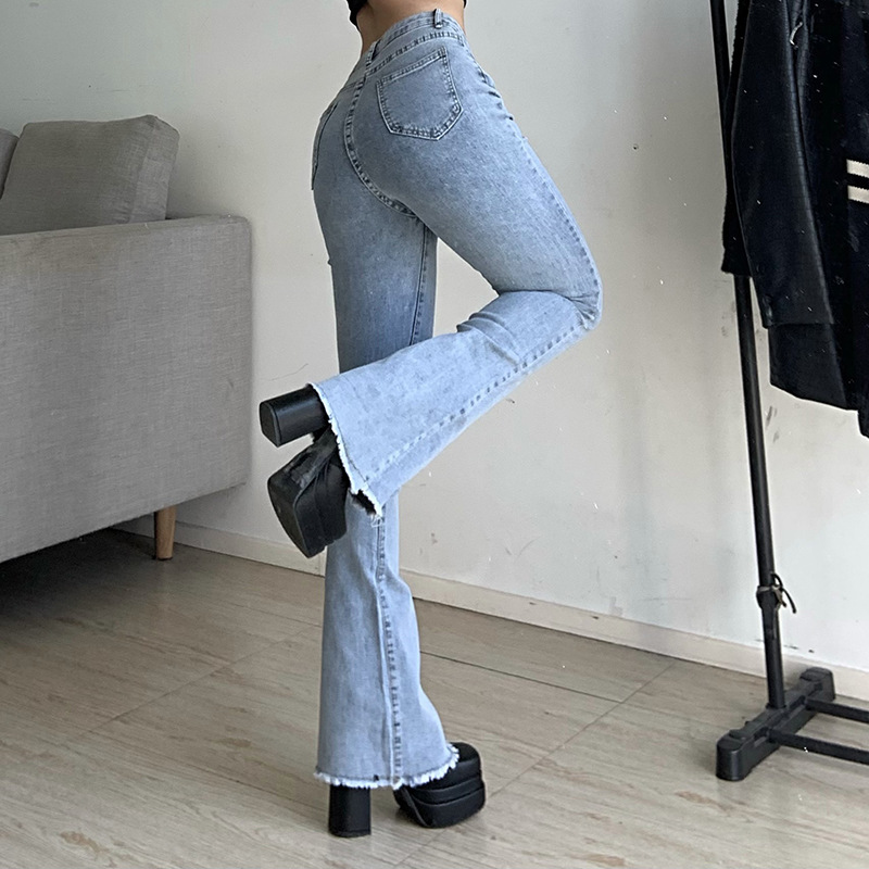 High Waist Slimming Distressed Skinny Flared Jeans