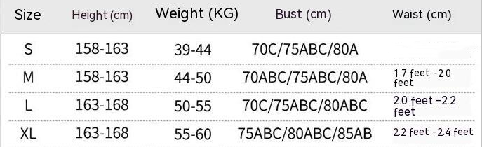 Size: M (42.50kg-49.00kg,L (49.00kg-54.00kg,XL (54.00 kg-60.00kg)