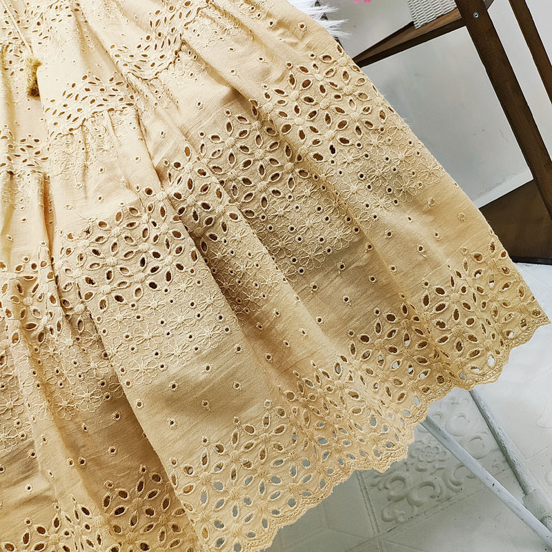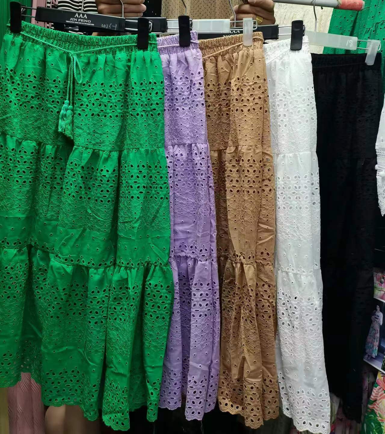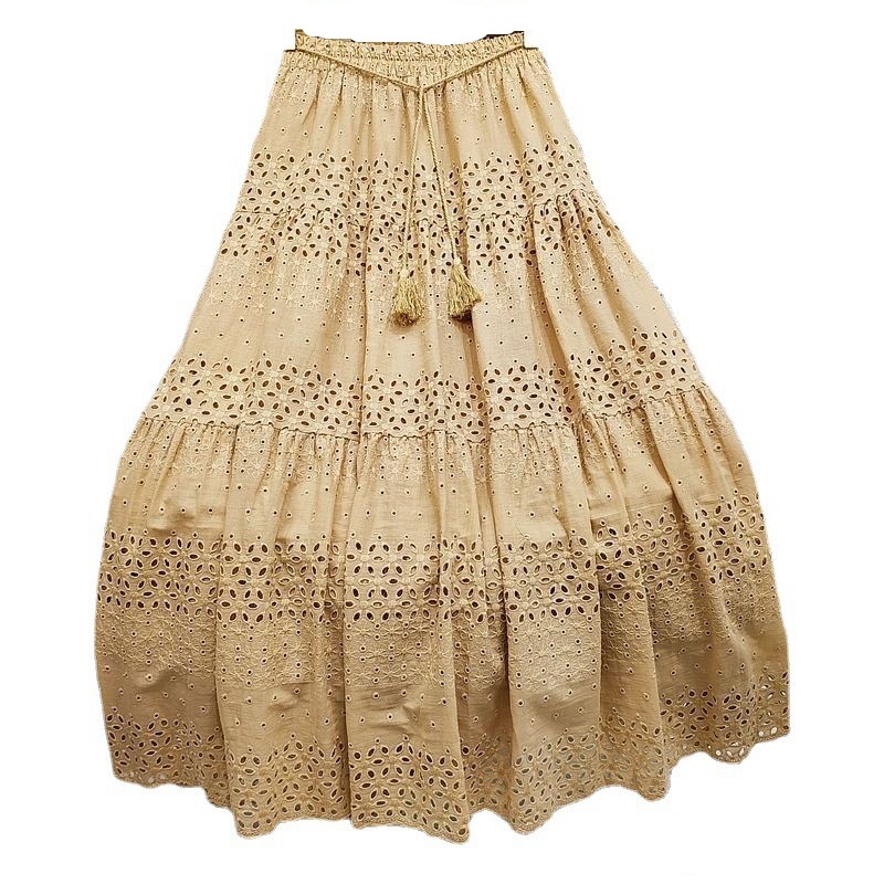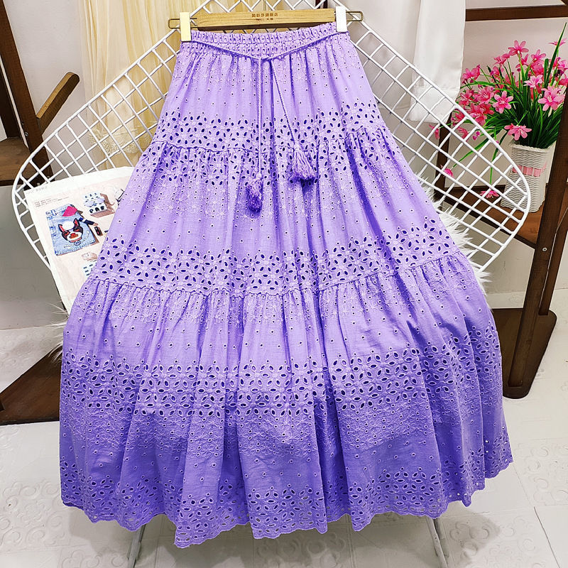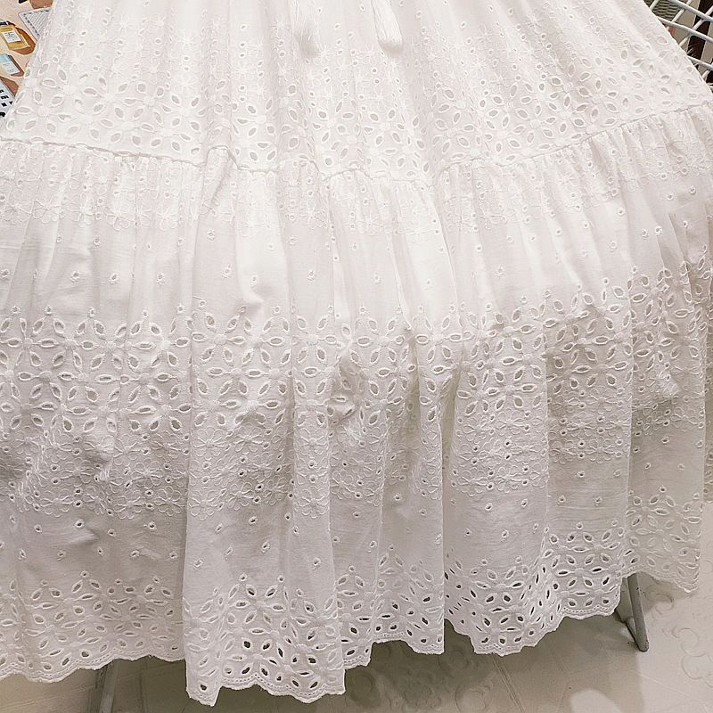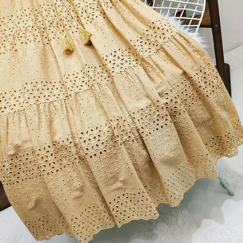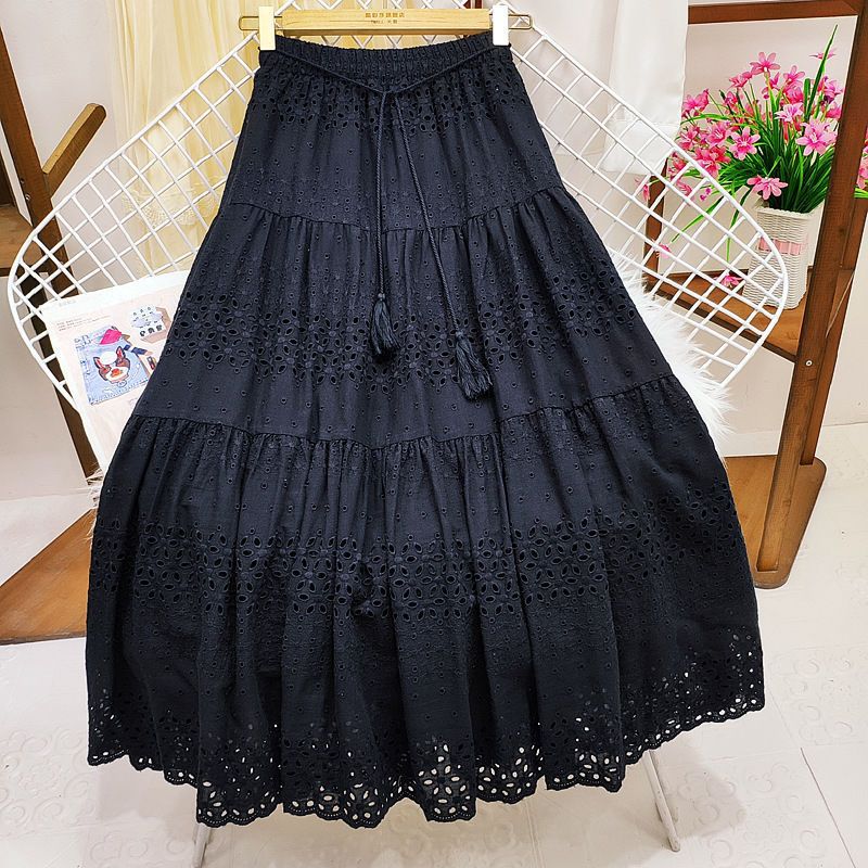 High Waist Stitching Crocheted Fairy Large Swing A- Line Mid-length