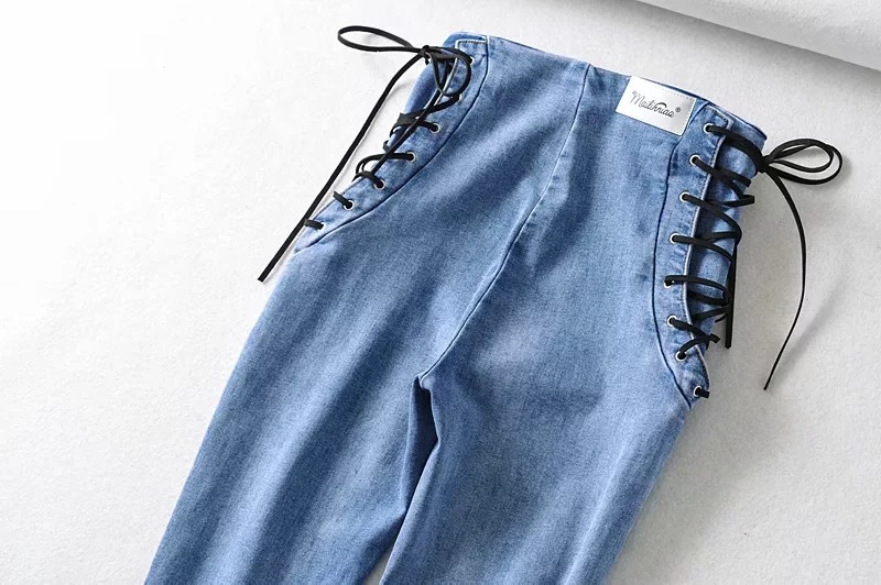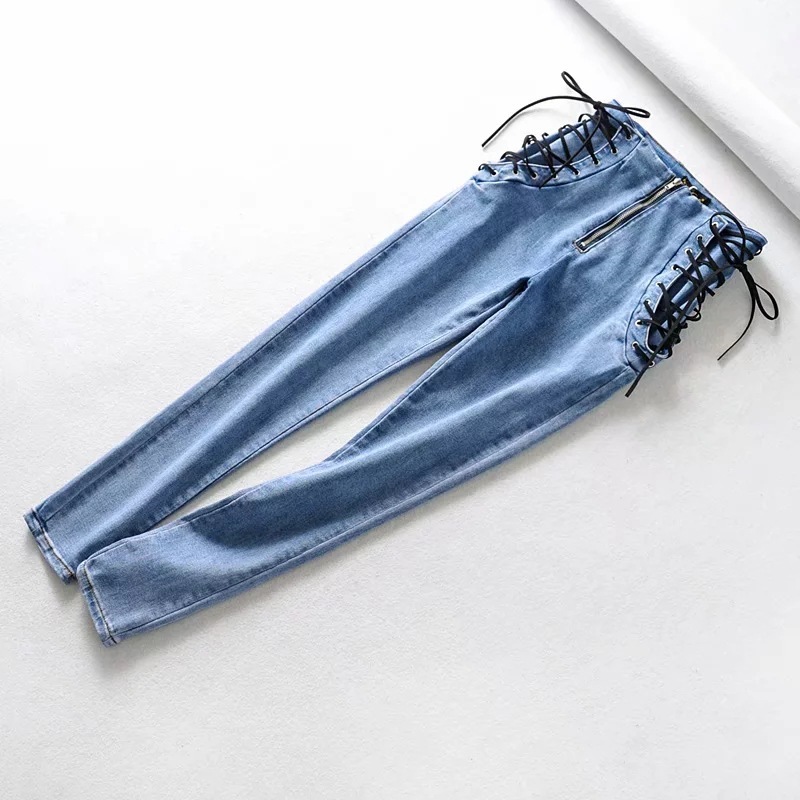 High waist stretch denim trousers skinny pants
