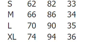 Size waist Hips Pants length