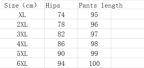 Size: XL 2XL 3XL 4XL 5XL 6XL