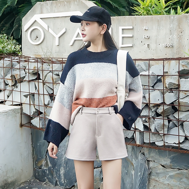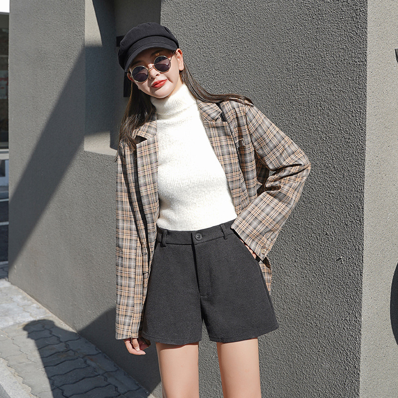 High waist woolen shorts