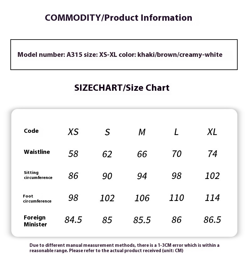 Color: A315 Milky White, A315 Brown, A315 khaki