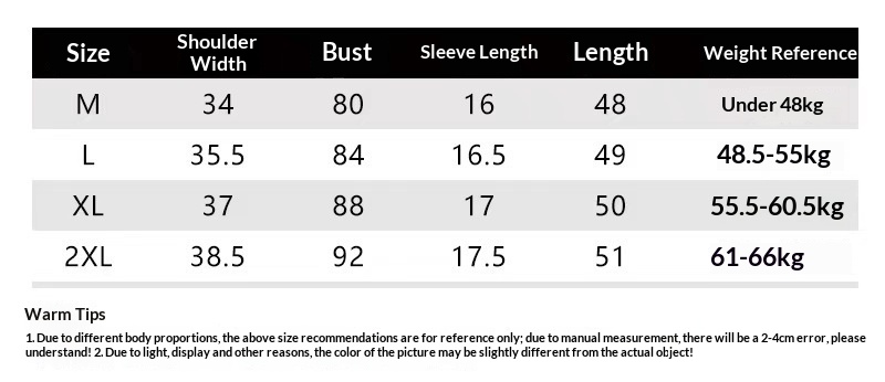 1. Asian sizes are 1 to 2 sizes smaller than European and American people. Choose the larger size if your size between two sizes. Please allow 2-3cm differences due to manual measurement. 2. Please check the size chart carefully before you buy the item, if you don't know how to choose size, please contact our customer service. 3.As you know, the different computers display colors differently, the color of the actual item may vary slightly from the following images.