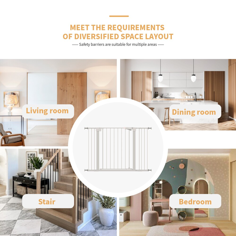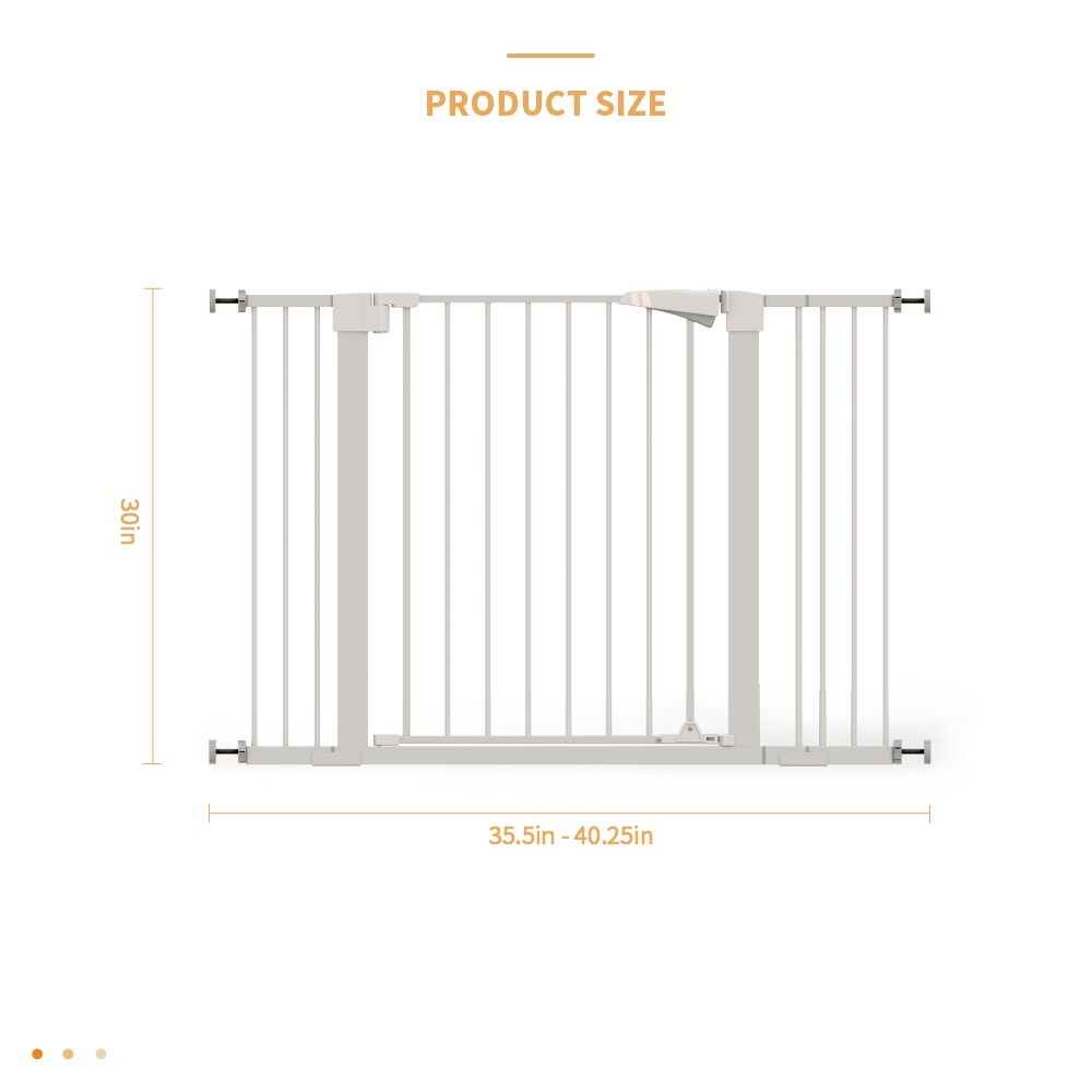 Product SpecificationsProduct InformationProduct Name: 30" High White Child Safety Gate for Baby Door Barrier with 7 14 14CM ExtensionsProduct Specifications: General ItemProduct Number: S05600007UPC:Product Type: General ItemCountry of Origin: ChinaMain Color: WhiteMain Material: Iron PlasticProduct DimensionsAssembled Length (inches): 40.25Assembled Width (inches): 2Assembled Height (inches): 30Assembled Weight (lbs): 13.67Packaging DimensionsLength (inches): 32Width (inches): 29Height (inches): 3Weight (lbs): 15Description