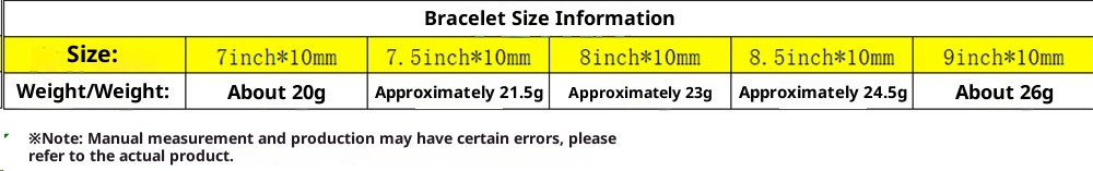 Purity: Bracelet 7 inches (length cm), bracelet 8 inches (length cm), bracelet 9 inches (length cm)