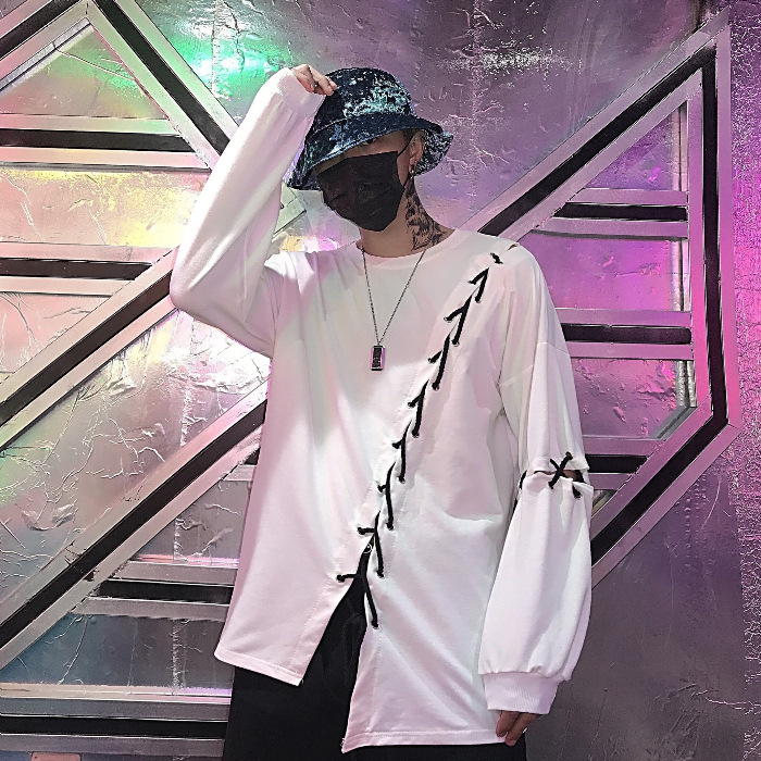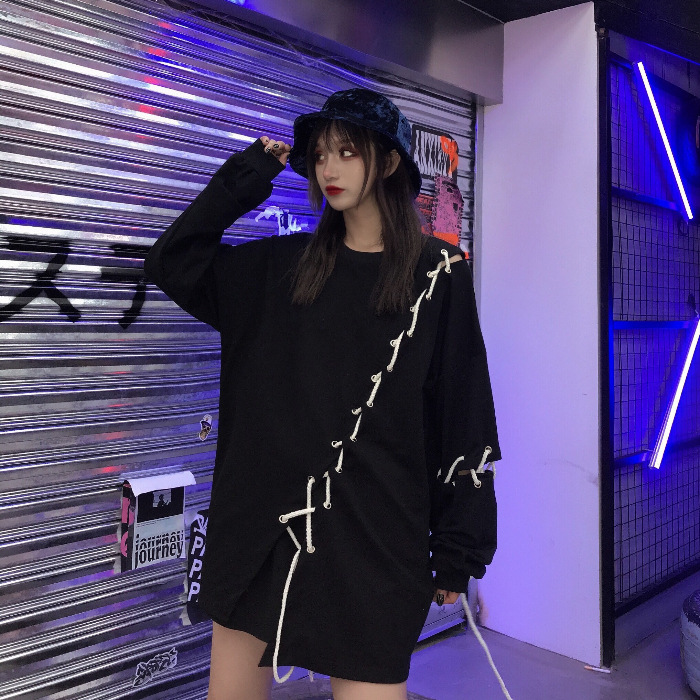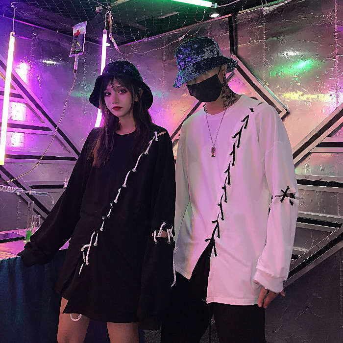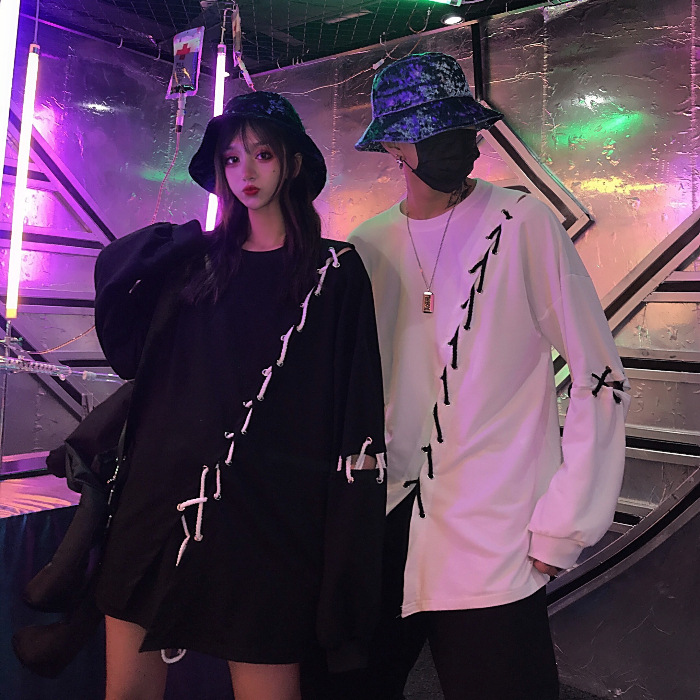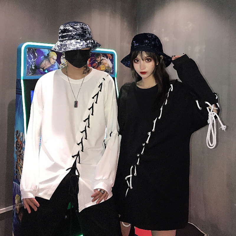 Hip-hop Personality Diy Lace-up Loose Thin Long-sleeved Hoodie Men's And Women's Tops