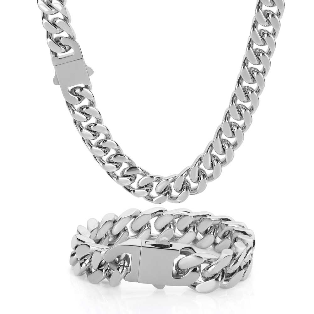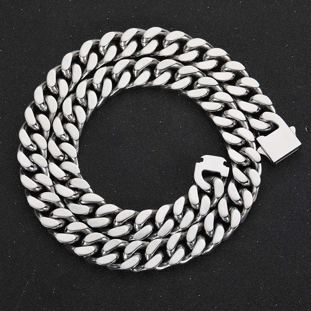 Hip Hop Stainless Steel Encrypted Four Sides Grind Cuban Chain