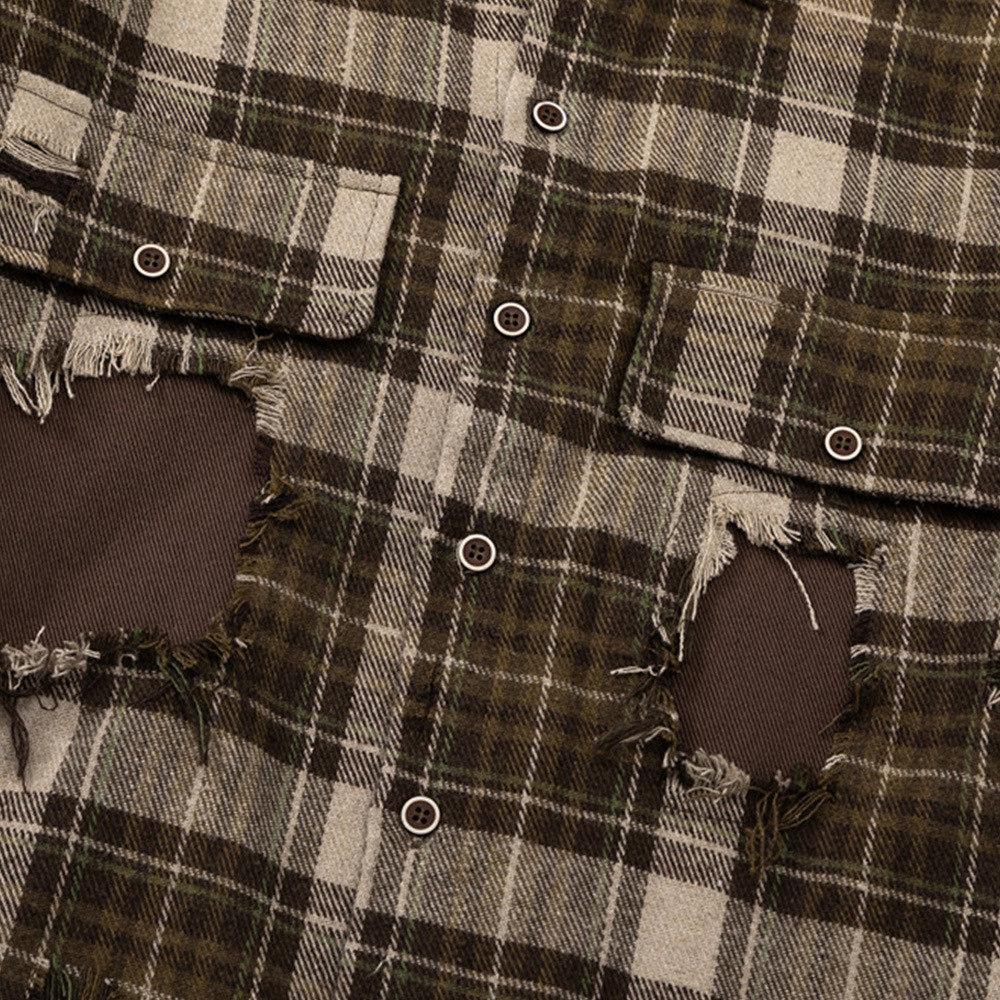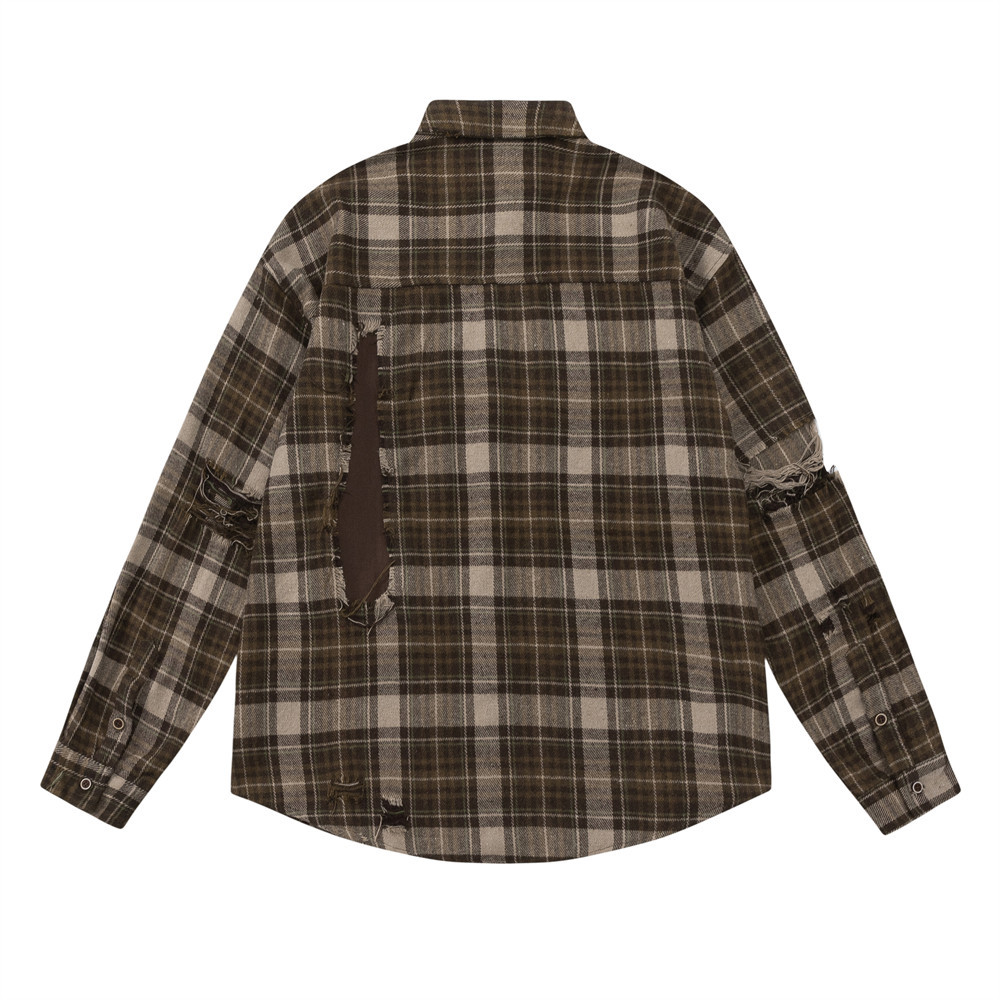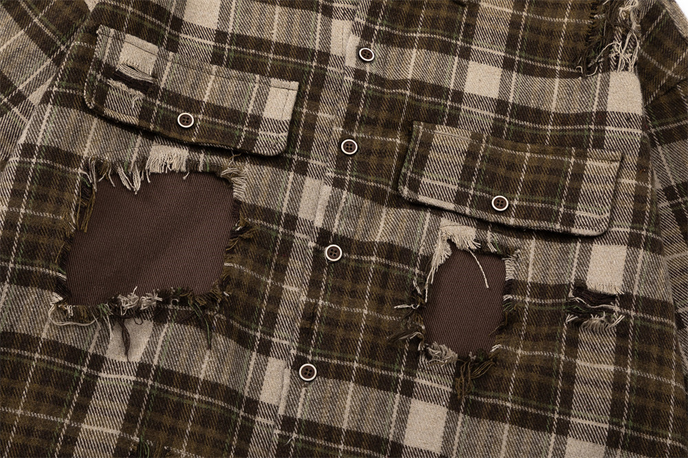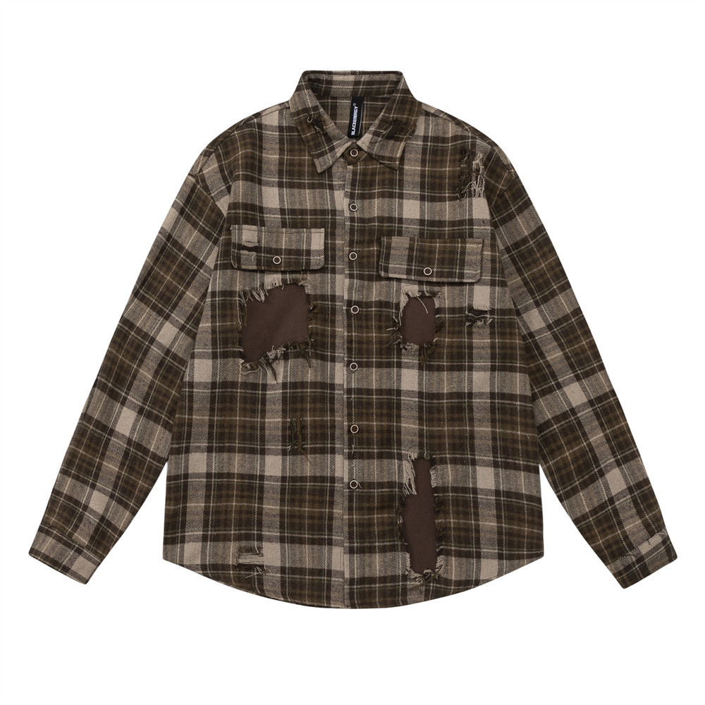 Hip Hop Trend Fashion Stitching Hole Patch Loose Lapels Shirt