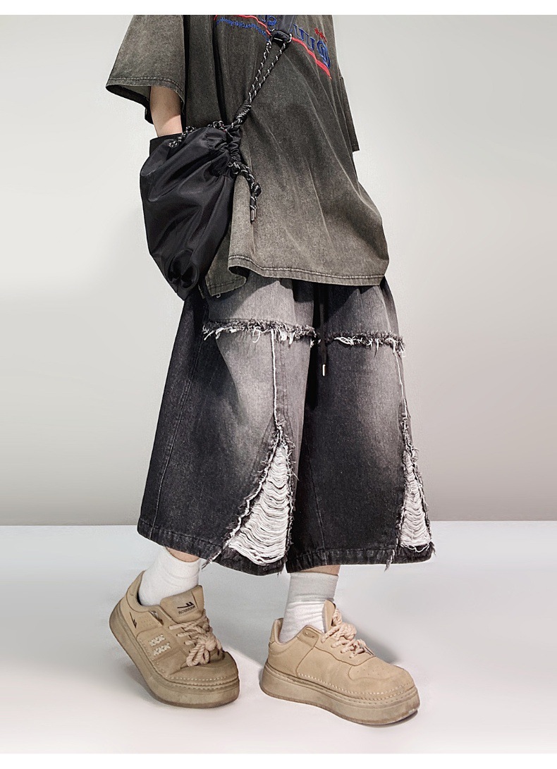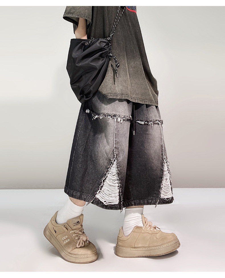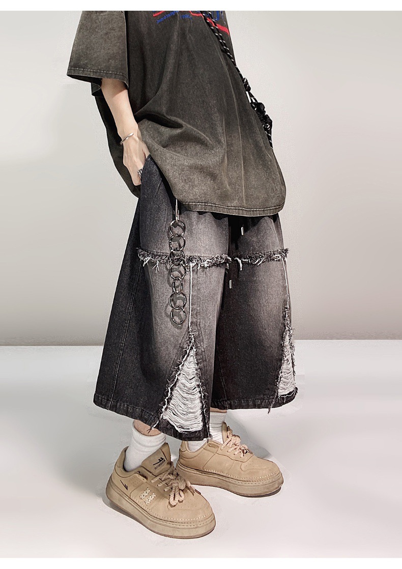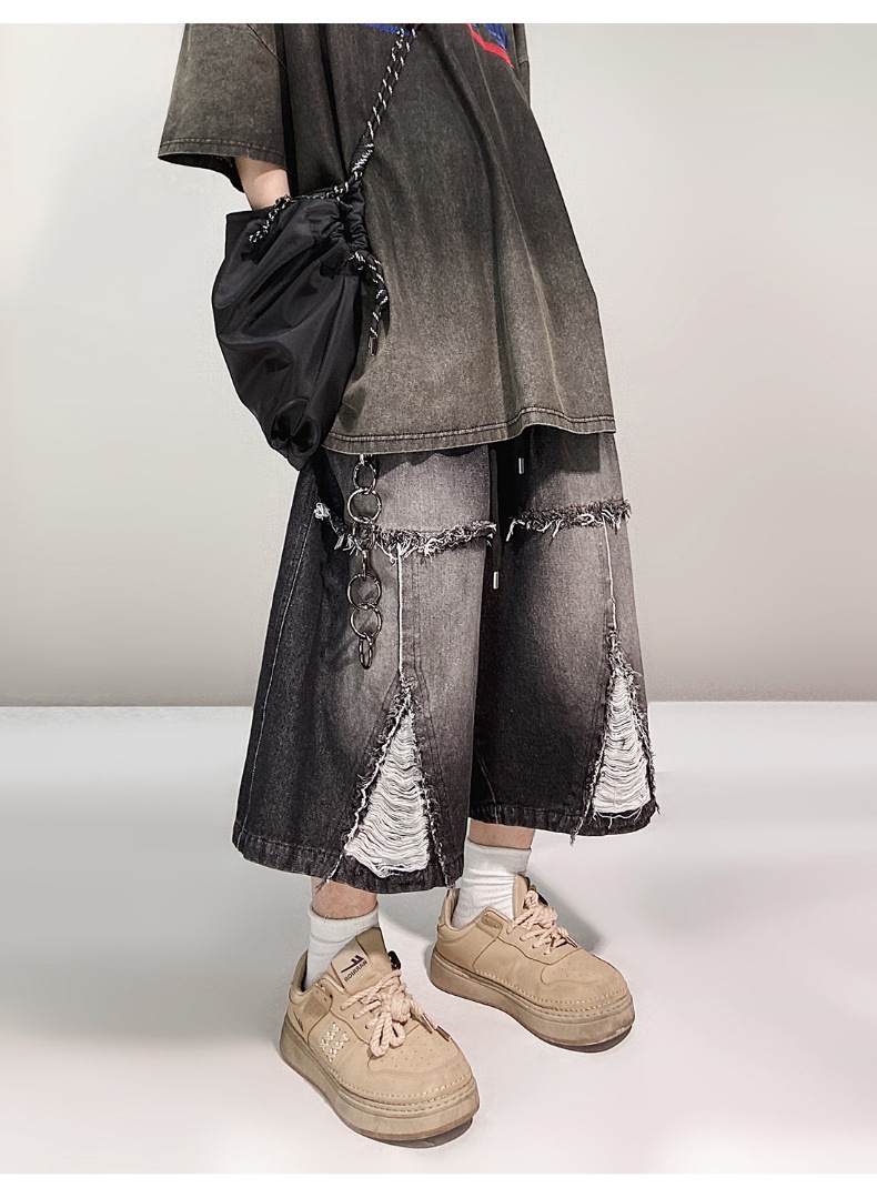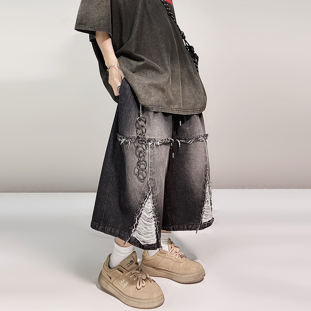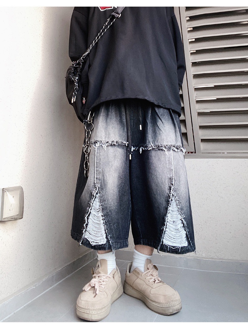 Hip Hop Wide Leg Retro Denim Shorts