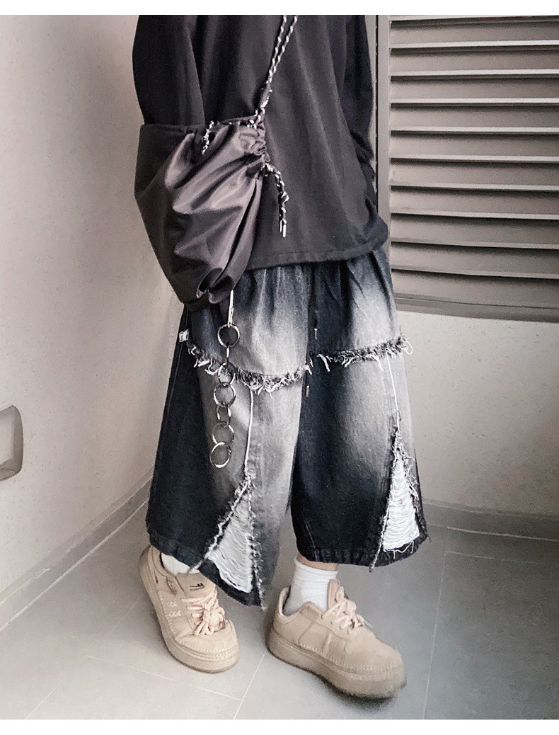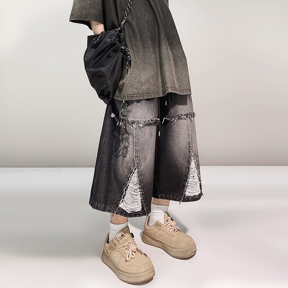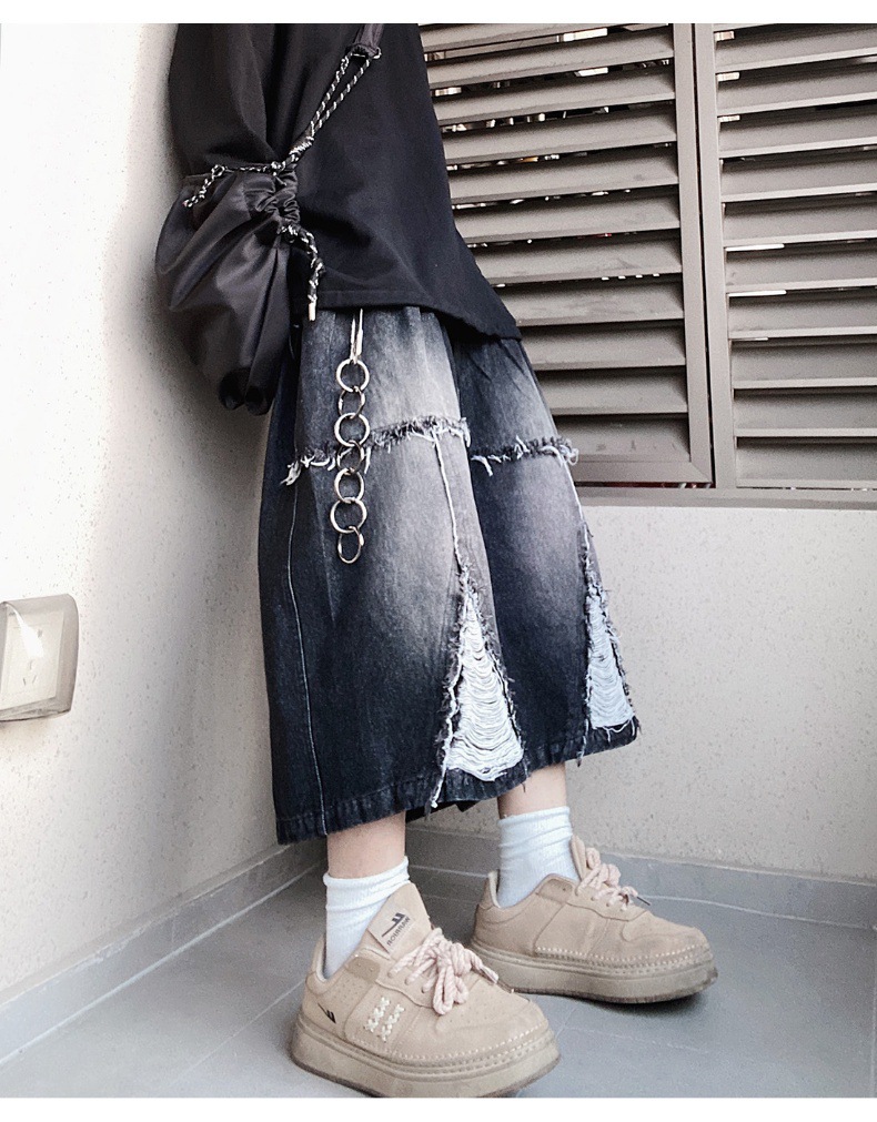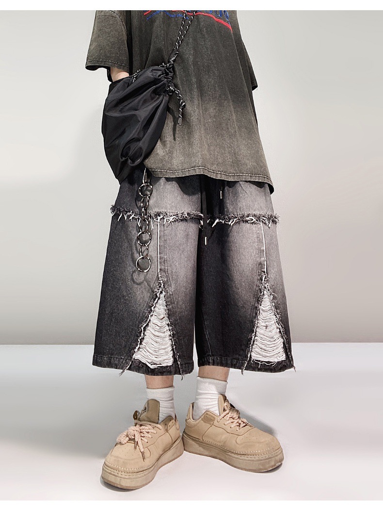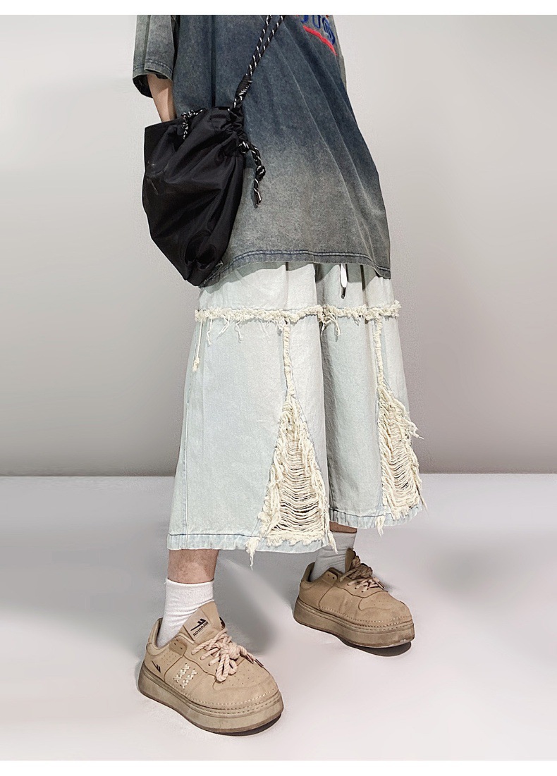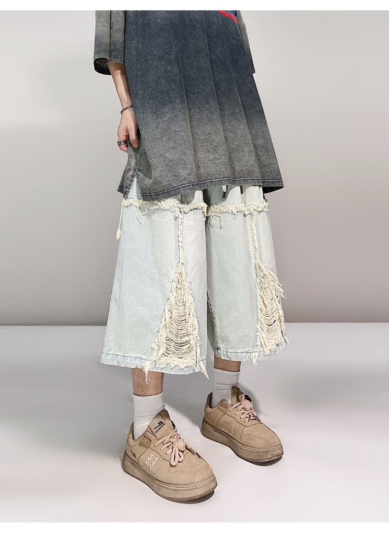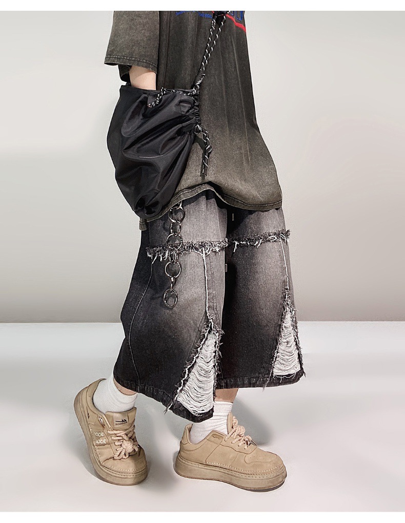 Hip Hop Wide Leg Retro Denim Shorts