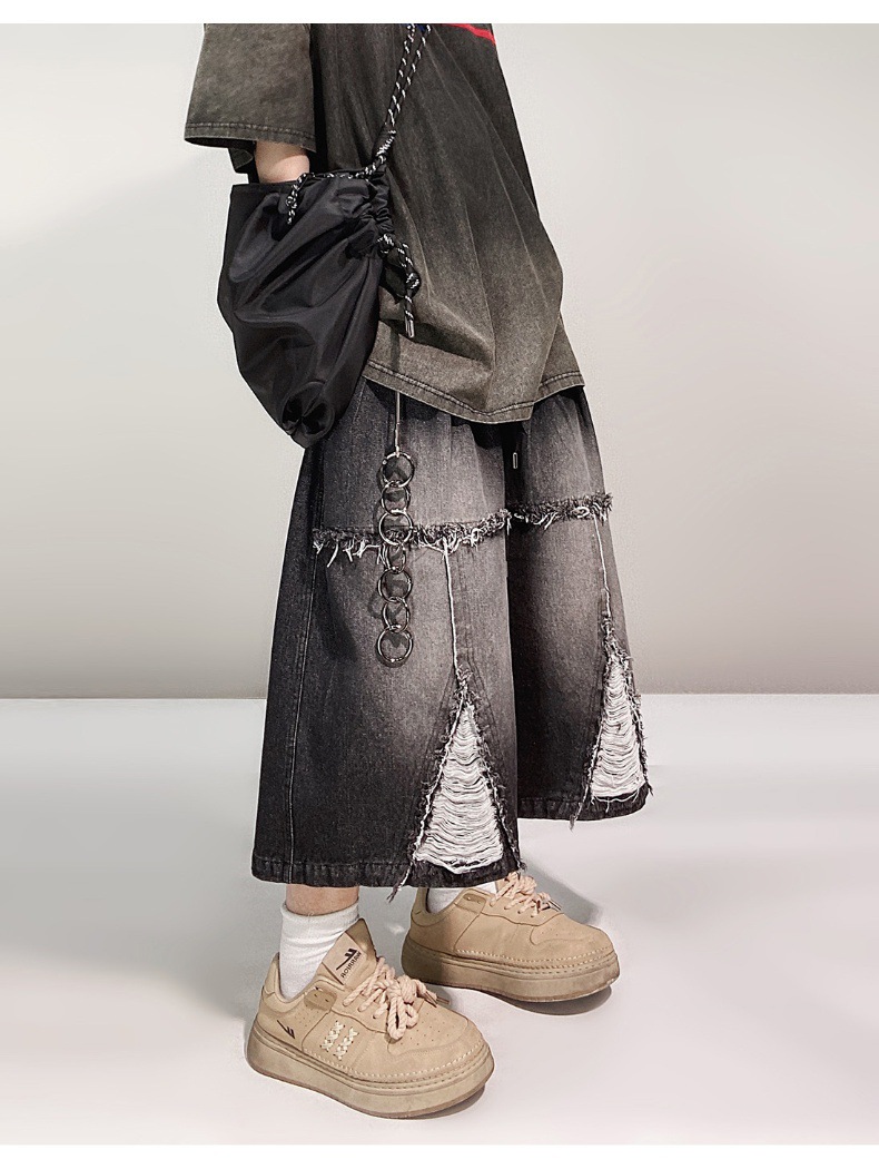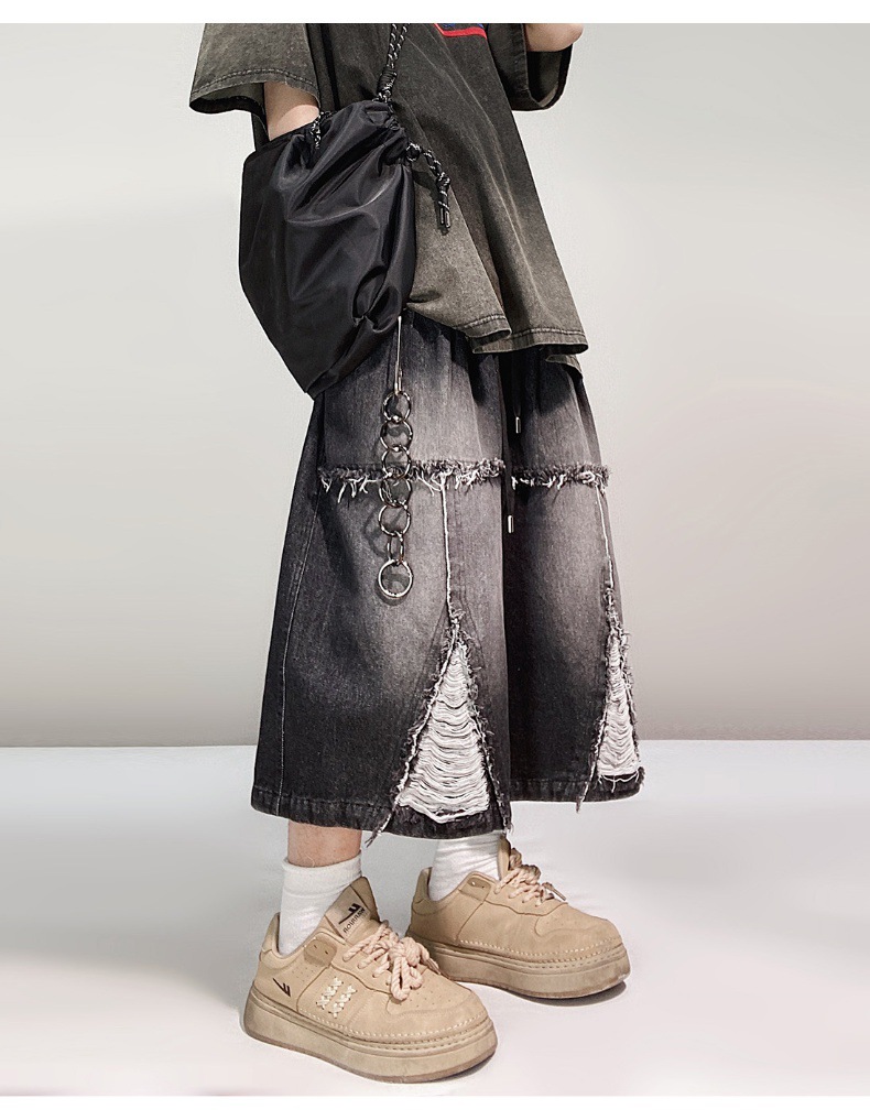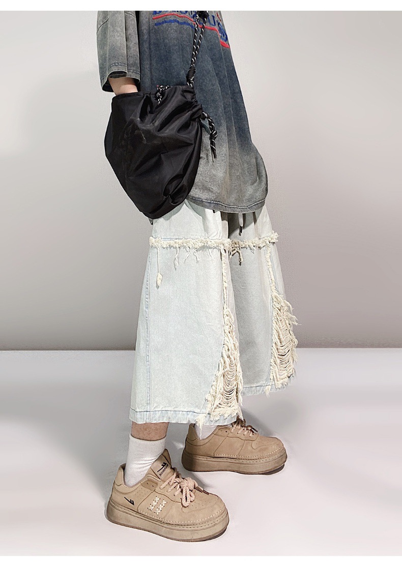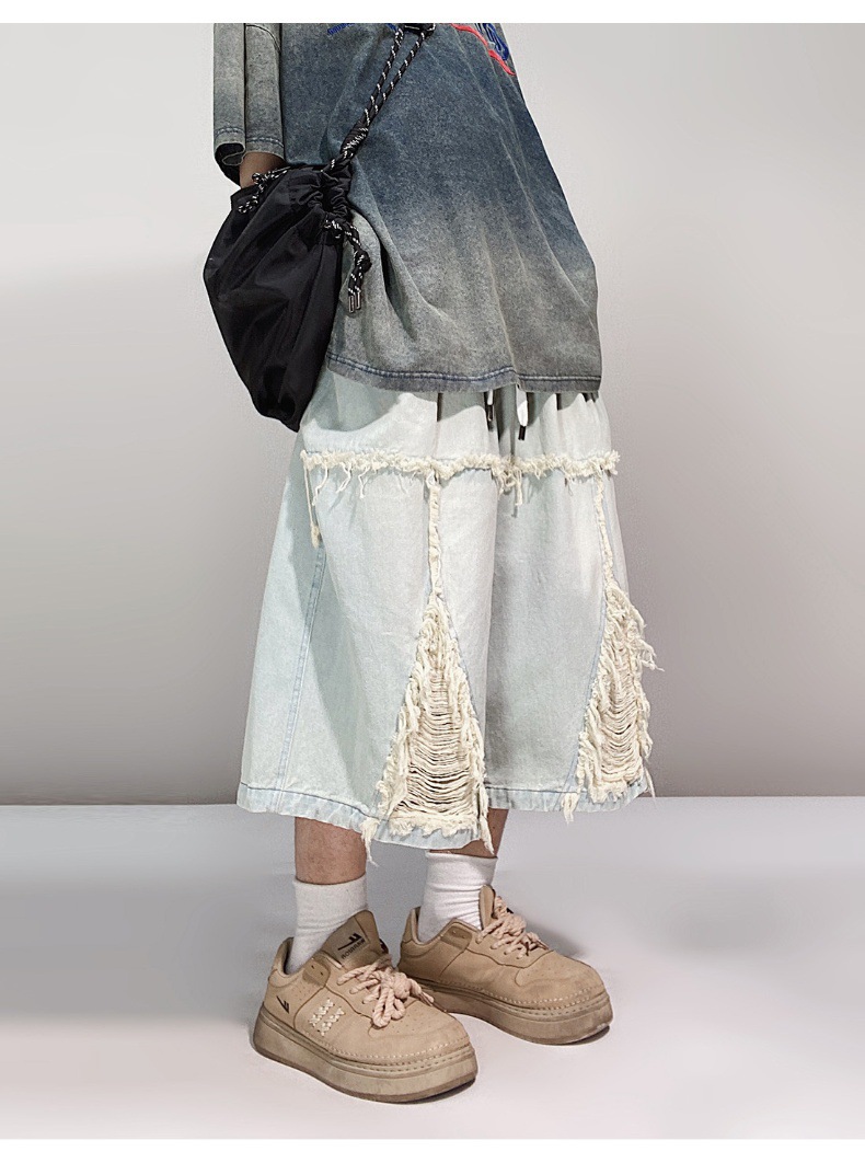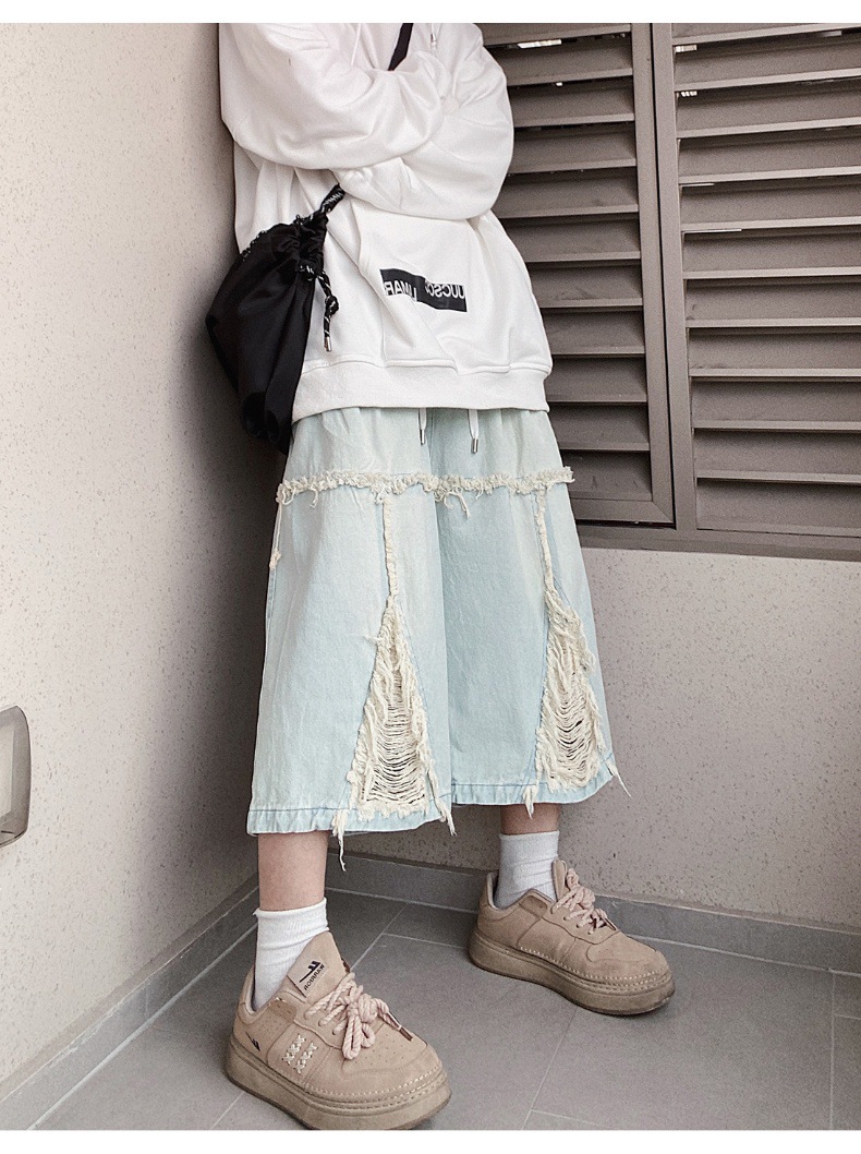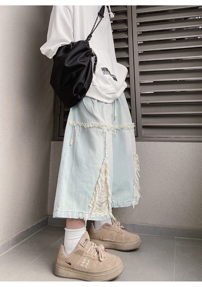 Hip Hop Wide Leg Retro Denim Shorts