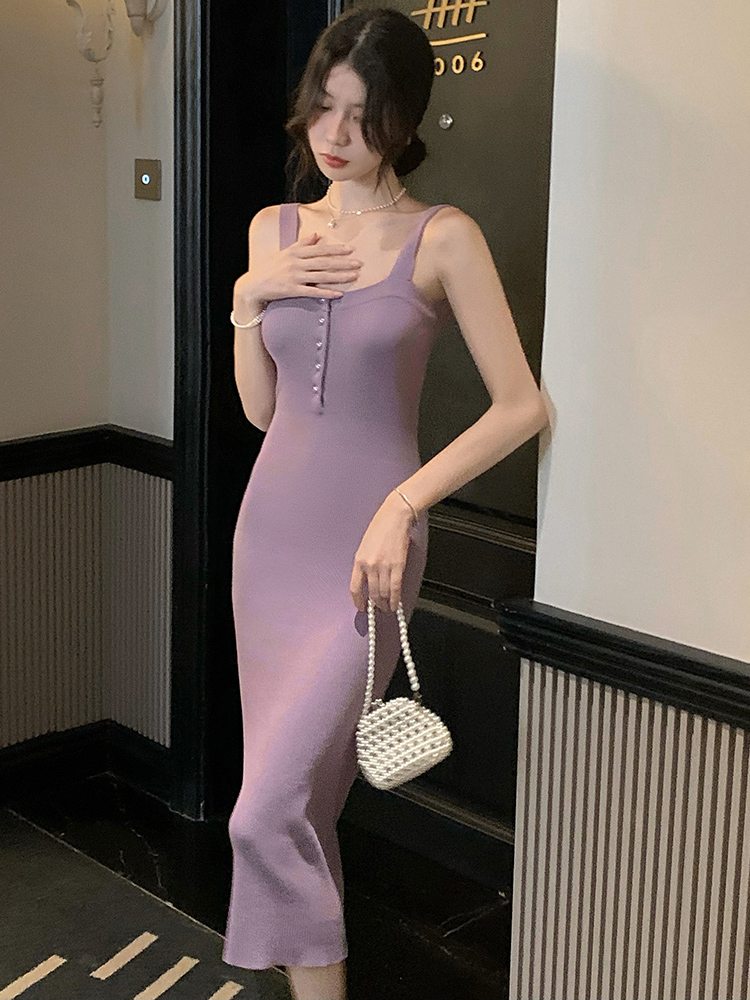 Color: purple cardigan+suspender dress