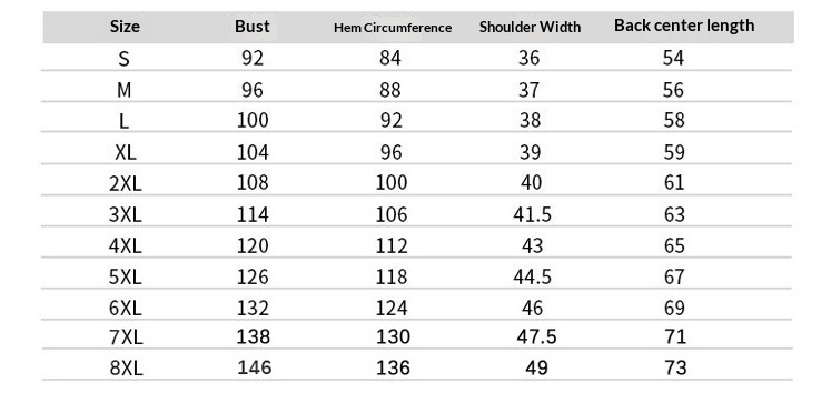 Size: M, L, XL, 2XL, 3XL, 4XL, 5XL, 6XL, 7XL, 8XL