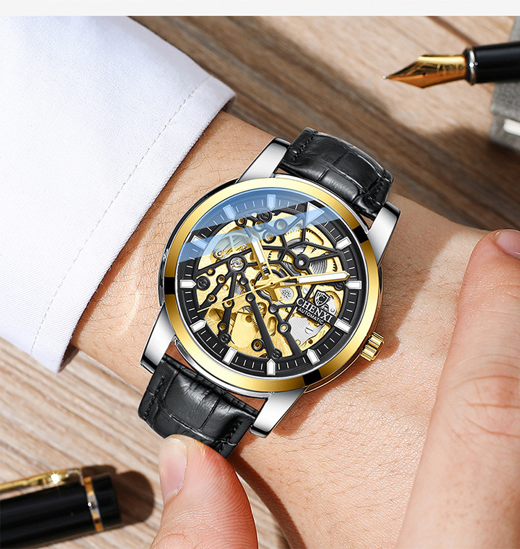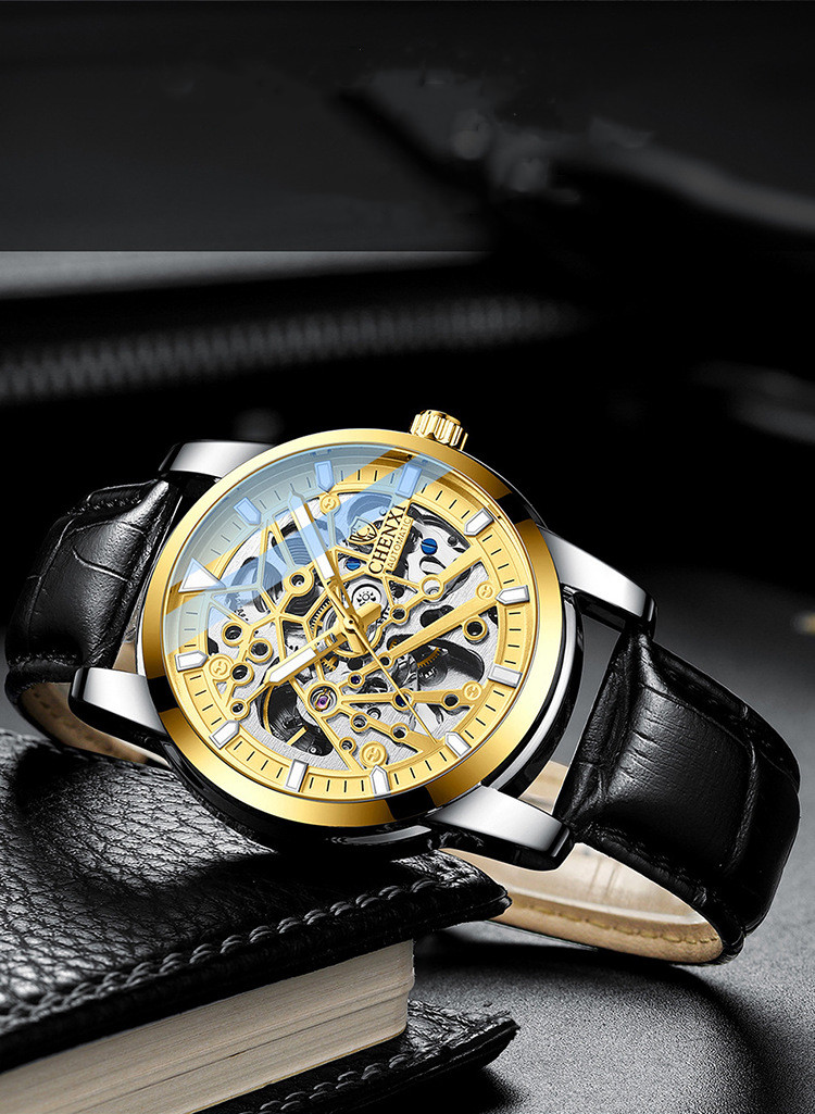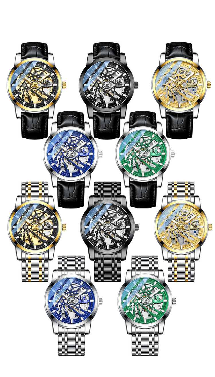 Color: White shell with blue surface and black leather belt, white shell with green surface and black leather belt, black shell with black surface and black leather belt, gold shell with black surface and black leather belt, gold shell with gold surface and black leather belt