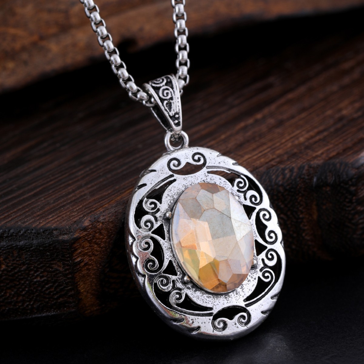 Hollow Carved Sachet Box Pendant Necklace