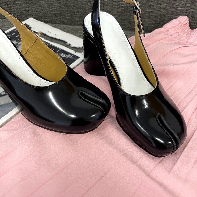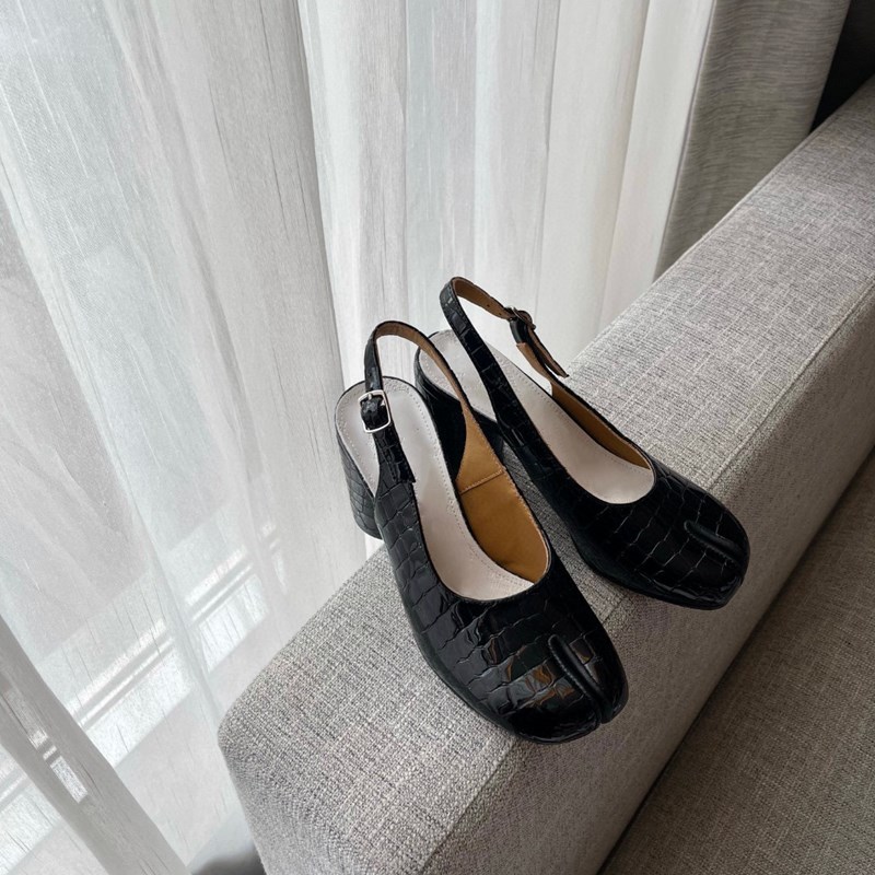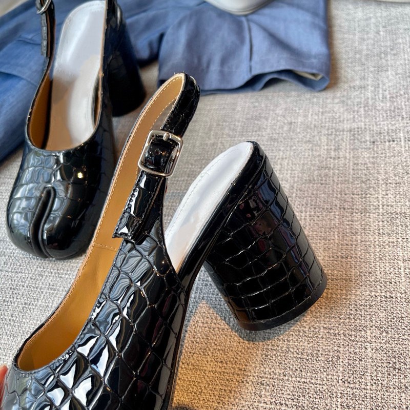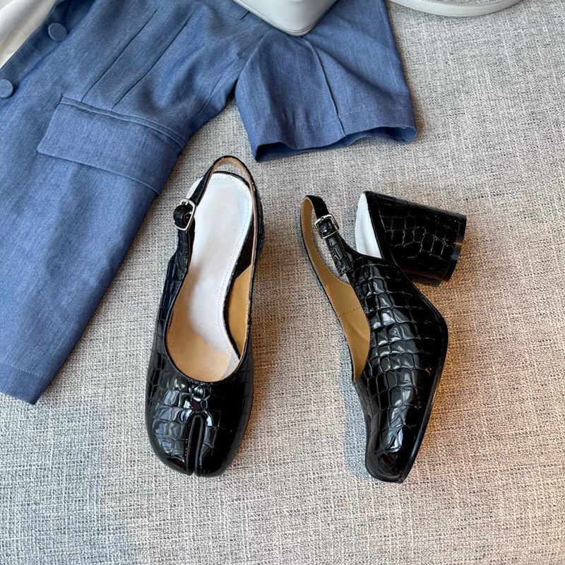 Hollow Chunky Heel Leather High Heel Split Toe Women's Sandals