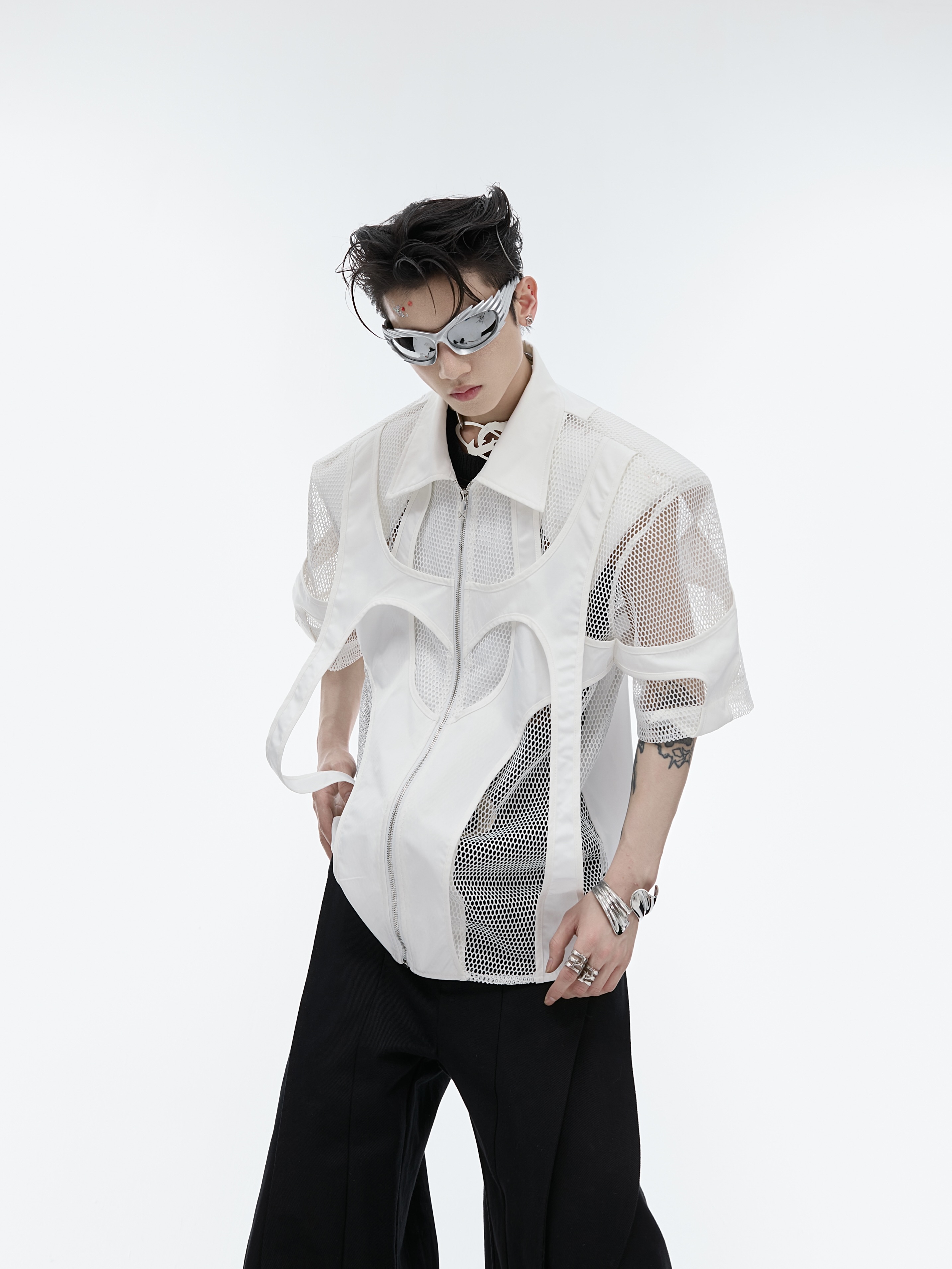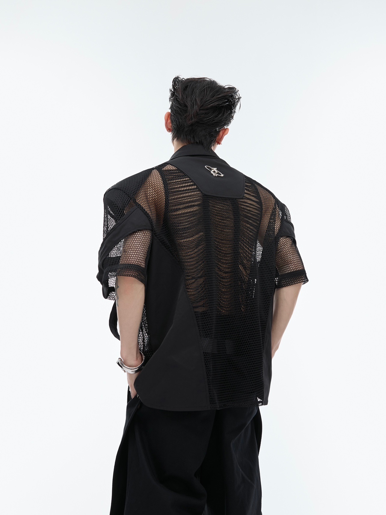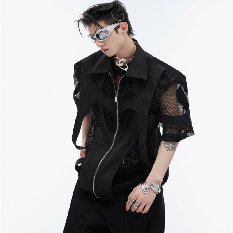 Hollow Mesh Short-sleeved Shirt Double-layer Stitching Loose T-shirt Coat