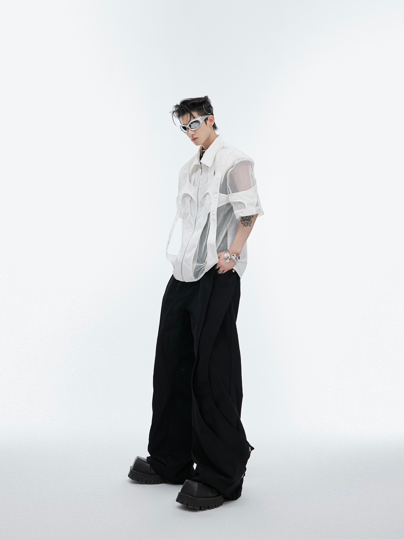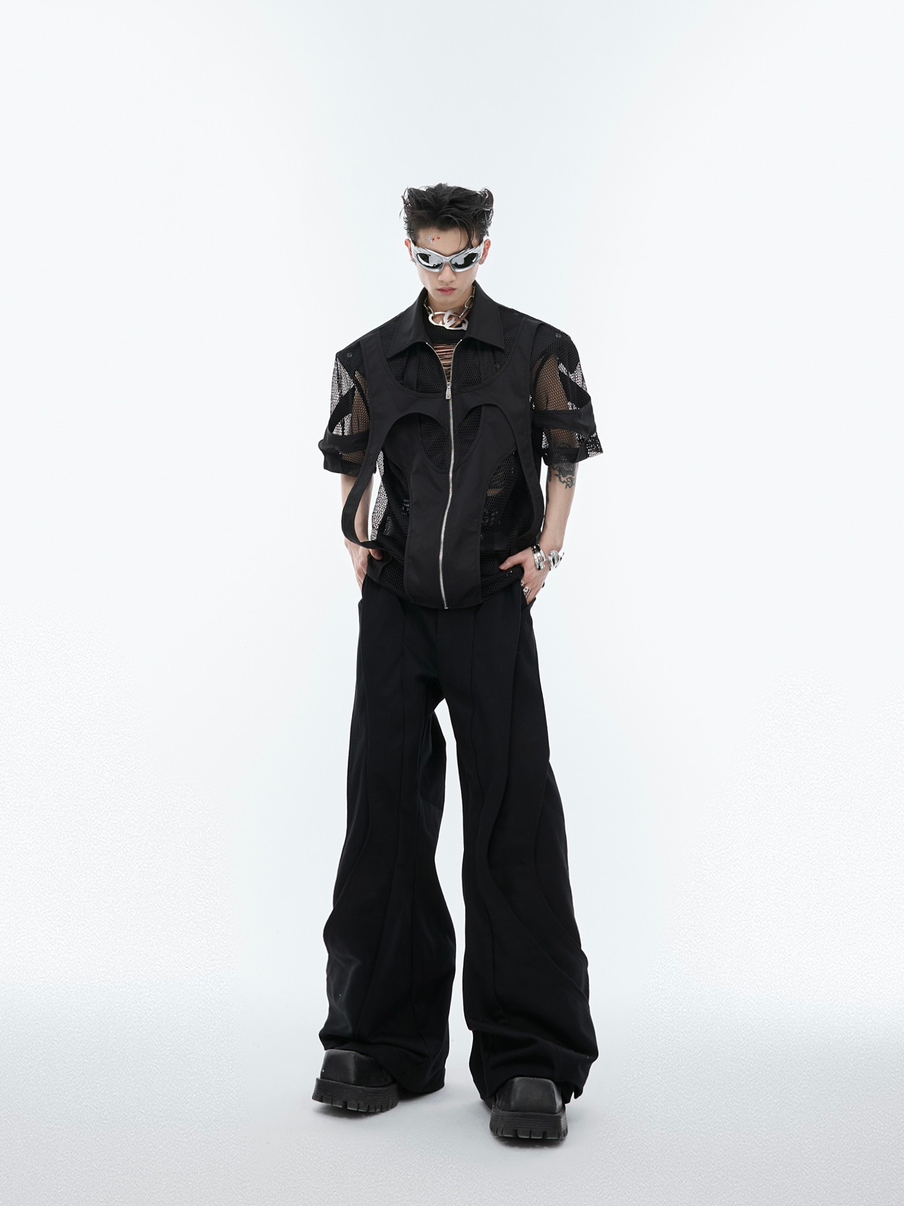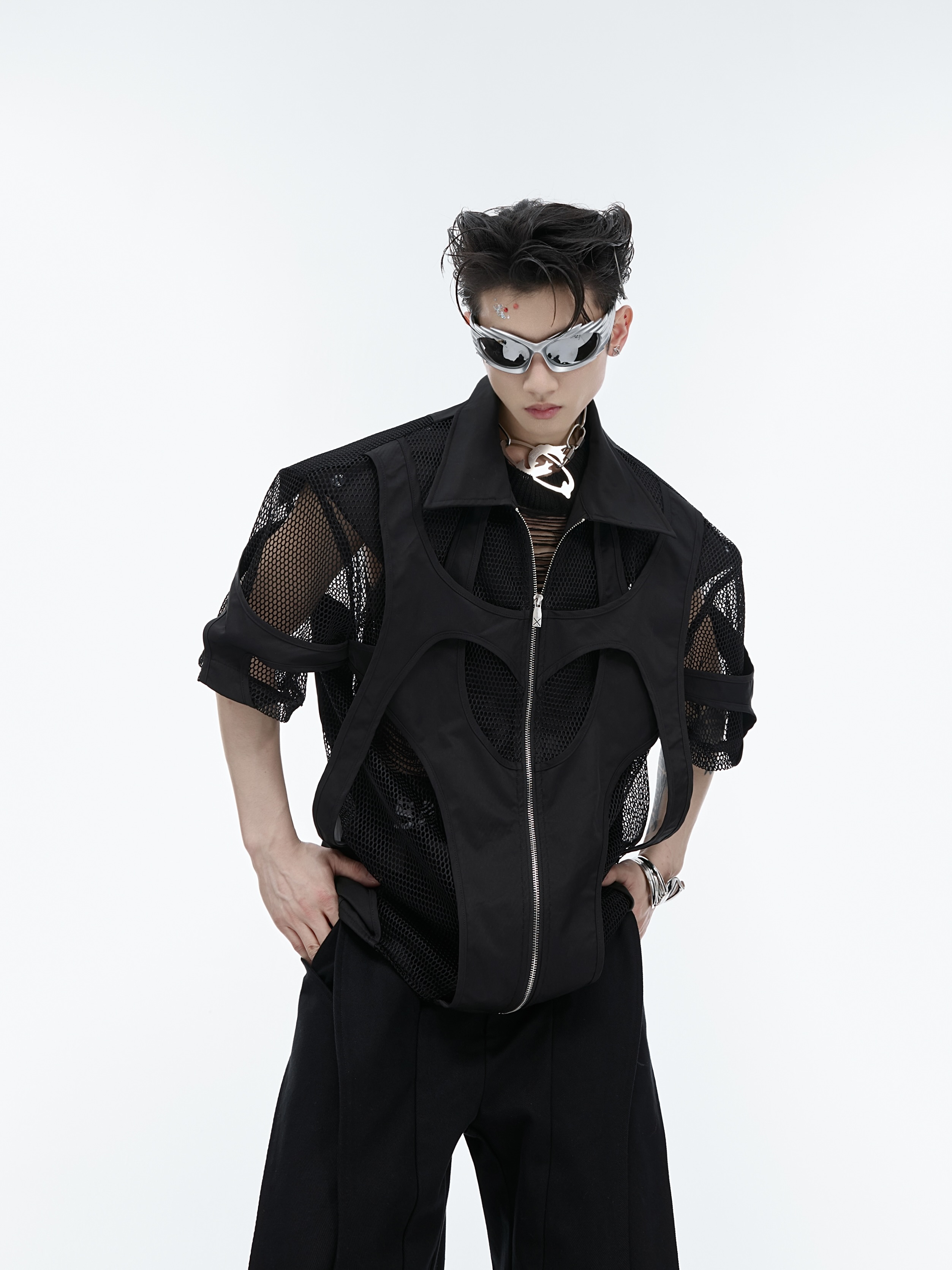 Hollow Mesh Short-sleeved Shirt Double-layer Stitching Loose T-shirt Coat