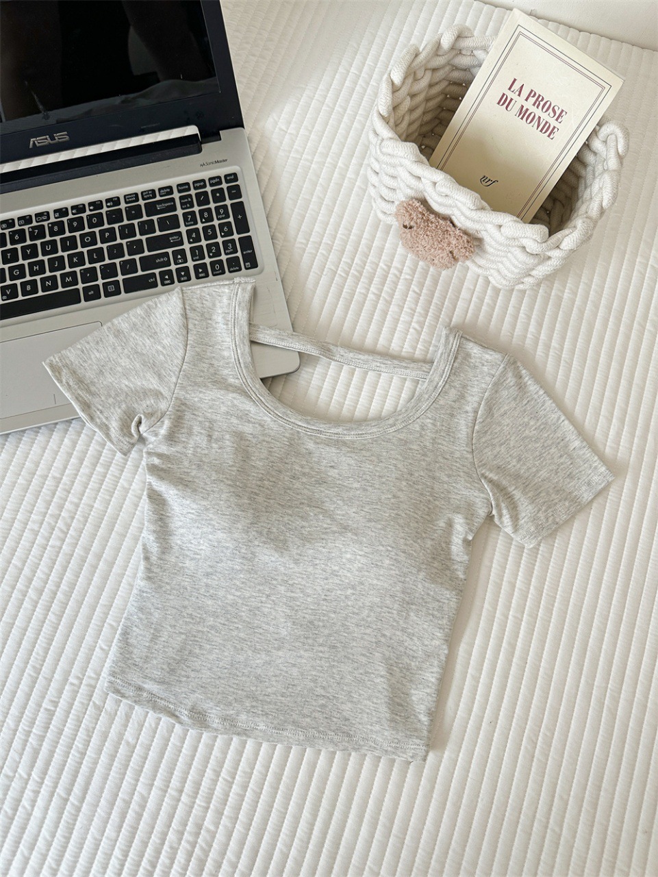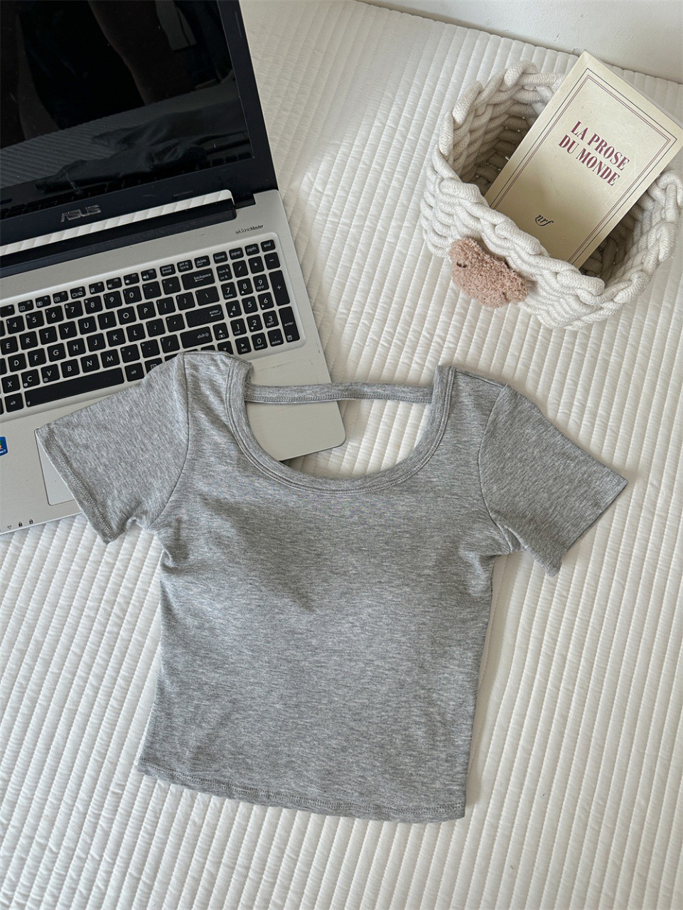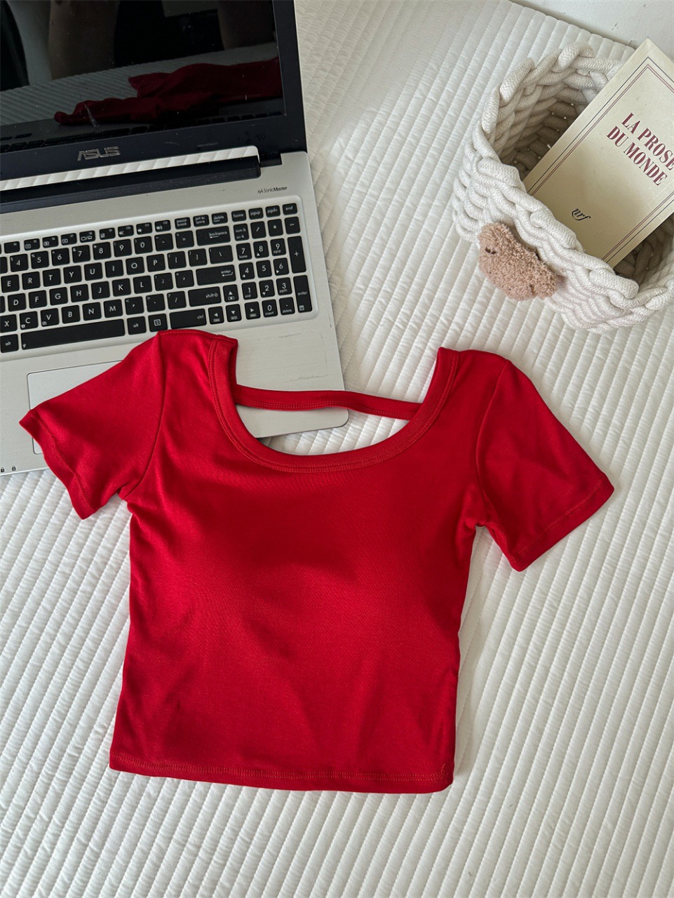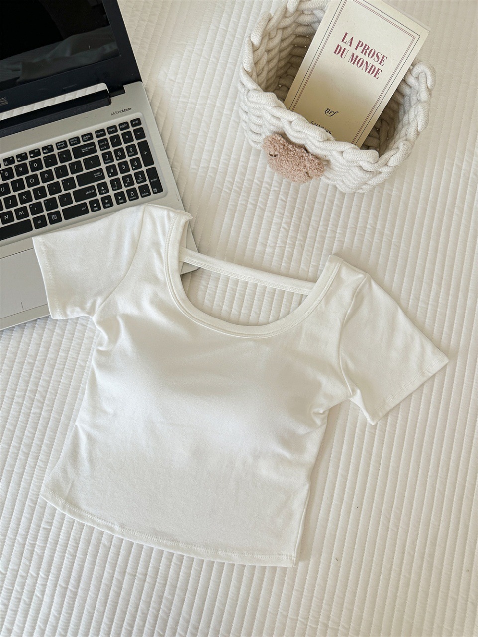 Hollow-out Cross Backless Tight Belt Chest Pad All-matching Round Neck T-shirt