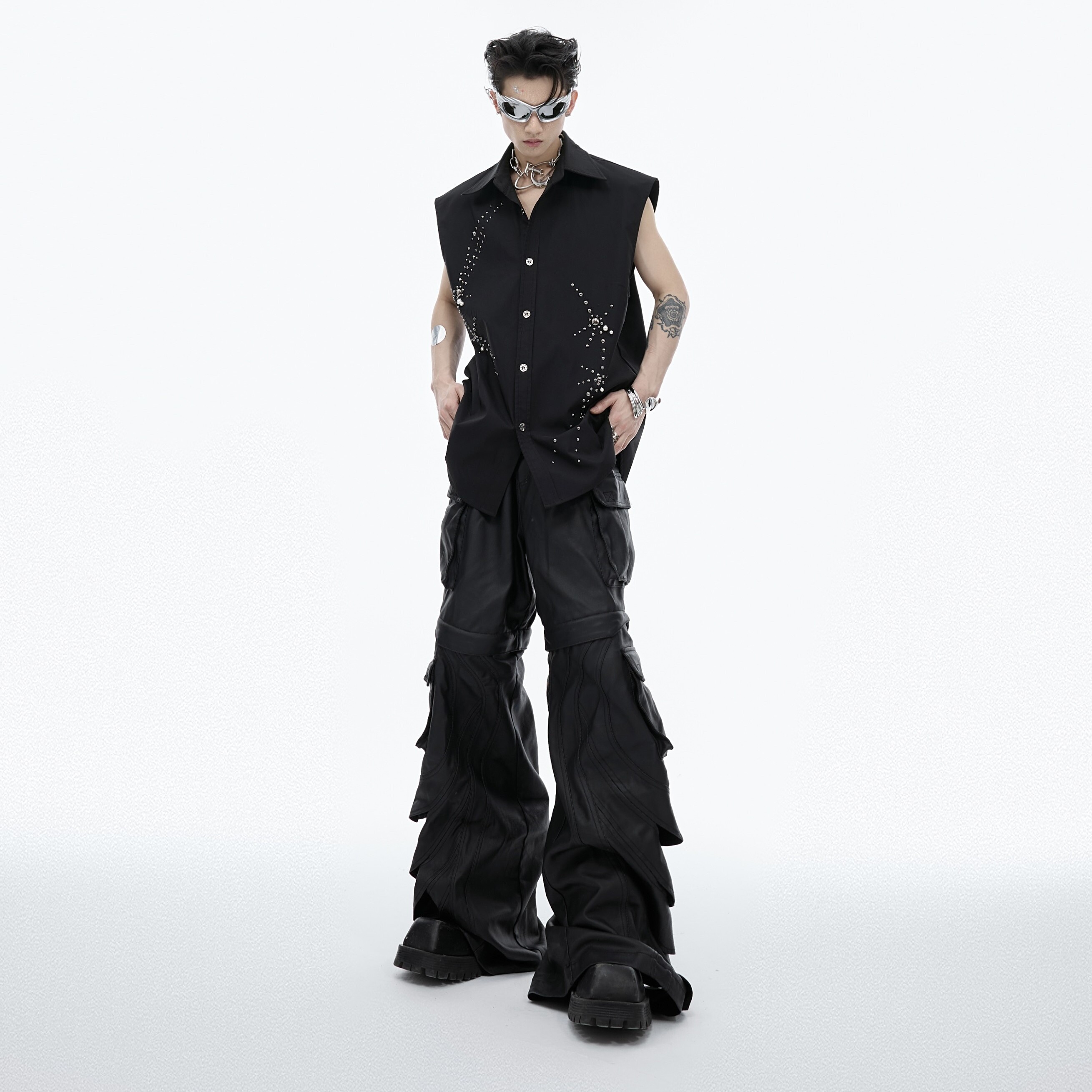 Hollow-out Design Sense Bootcut Casual Trousers For Men
