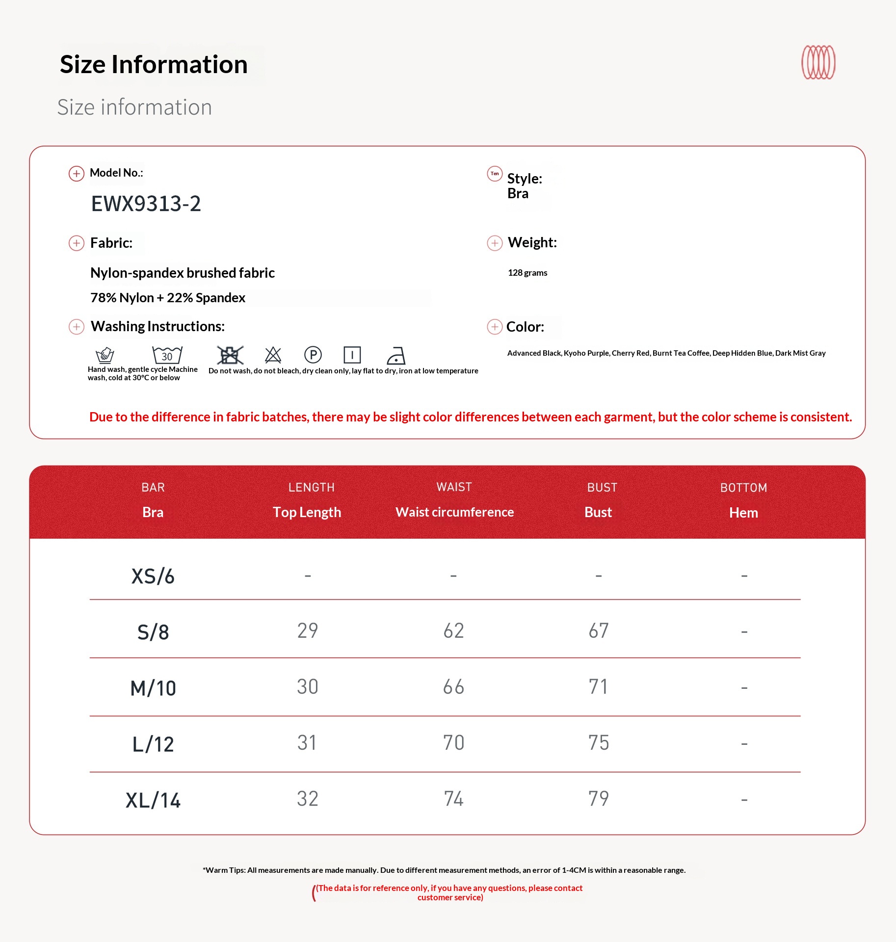 Lining Material Content: 78% Nylon, 22% Spandex