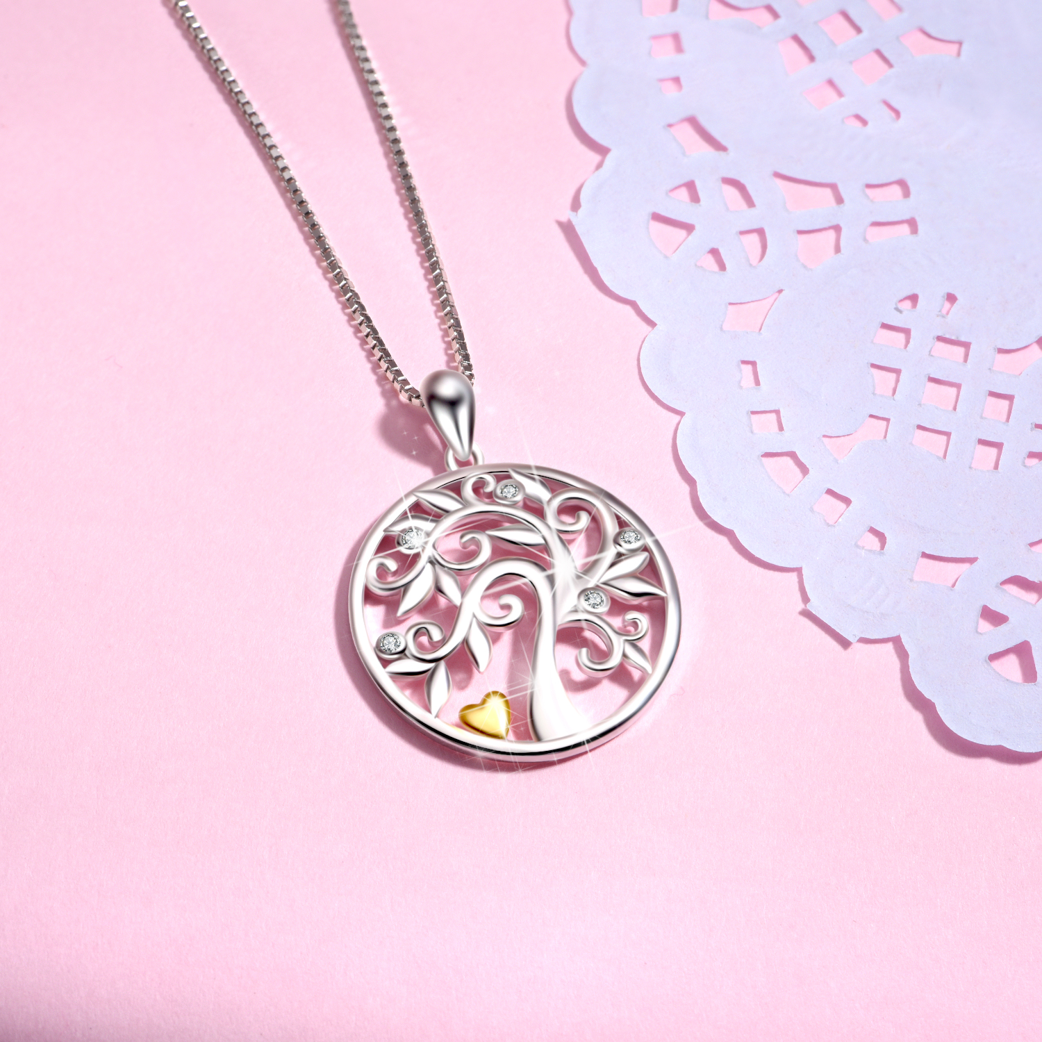Weight: 4.54 g925 sterling silver tree of life necklace female micro inlaid zircon