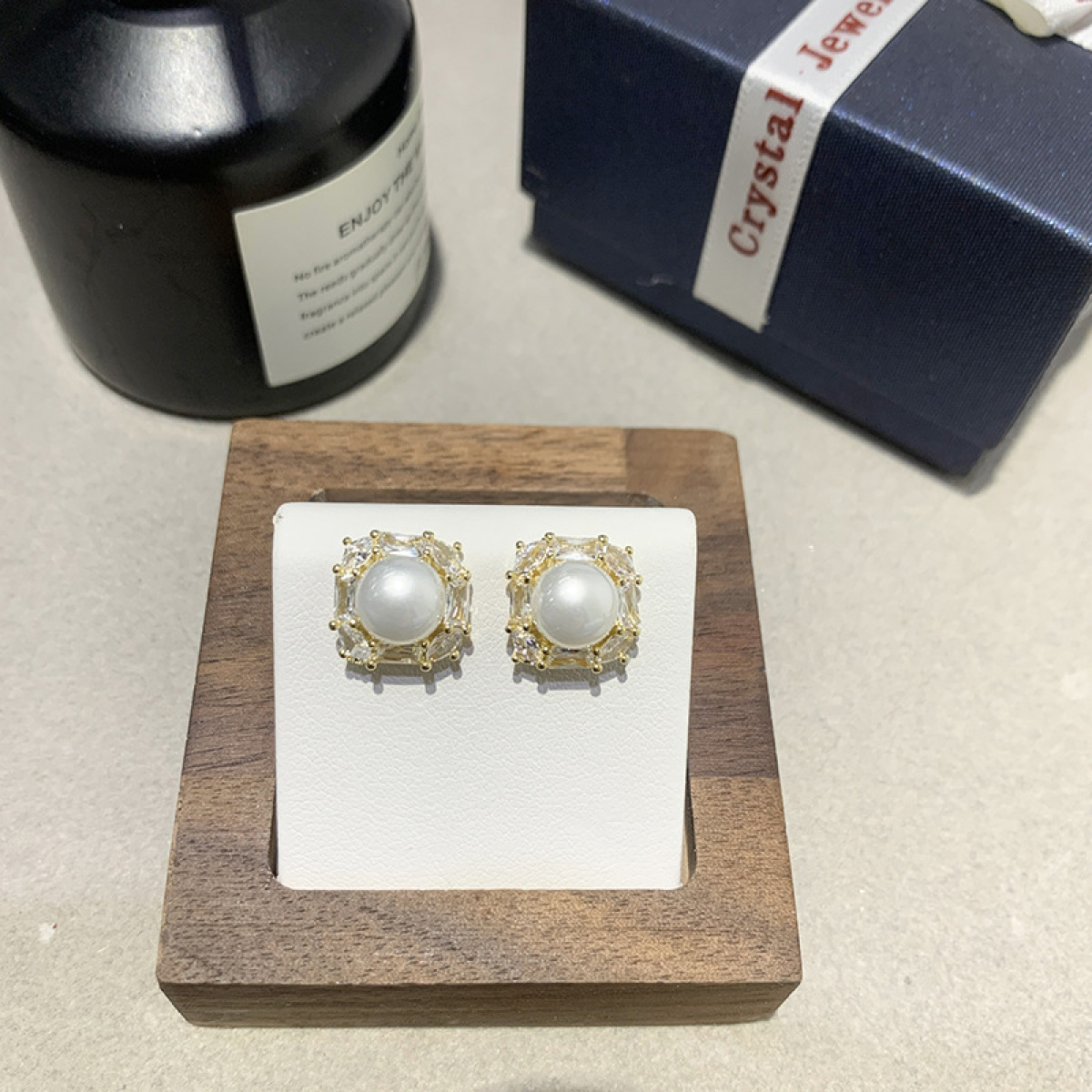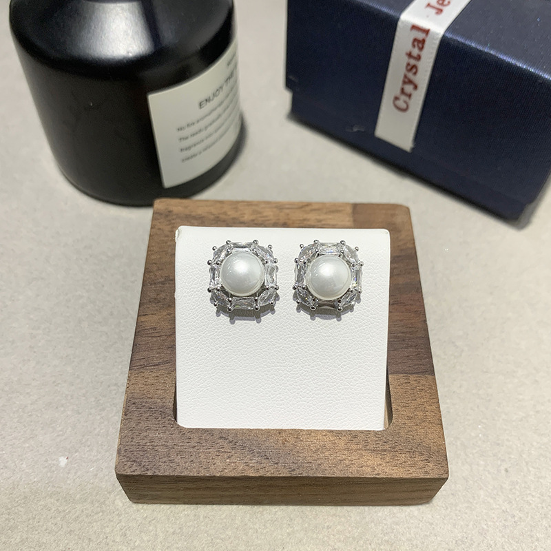 Hollow Out Micro Inlaid Zircon French Pearl Earrings