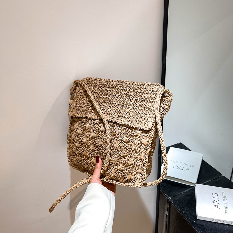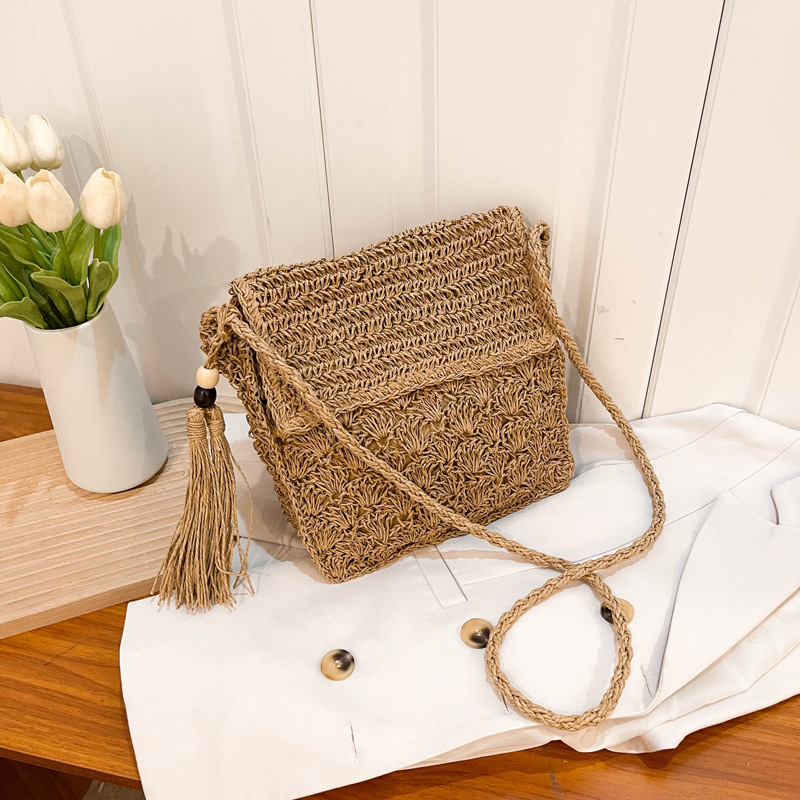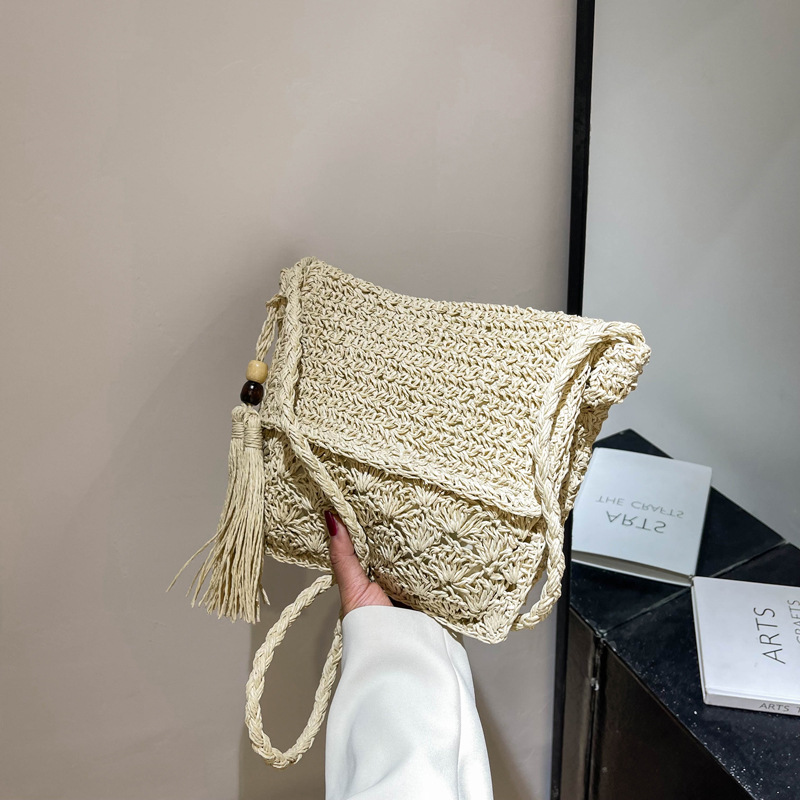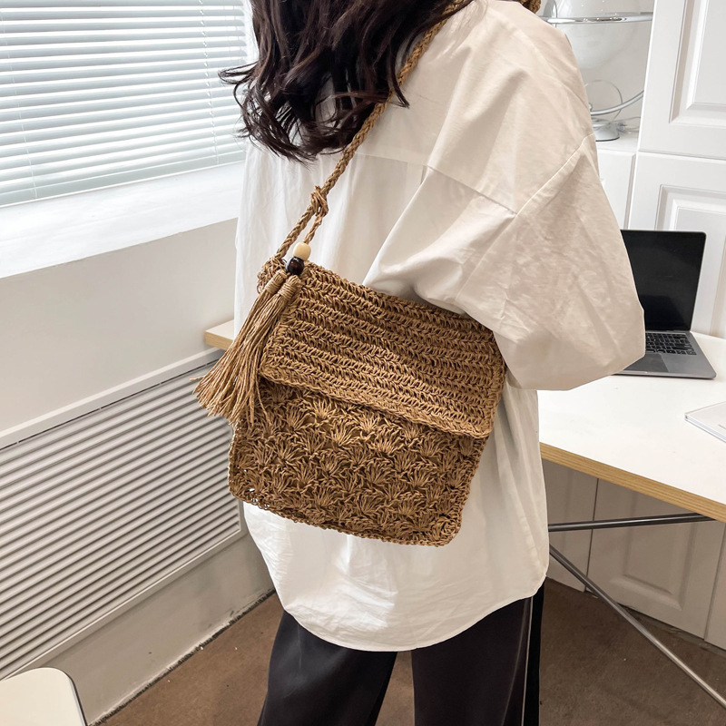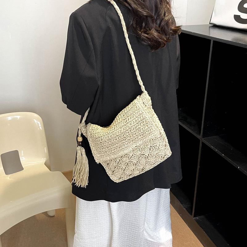 Hollow Out One Shoulder Crossbody Tassel Straw Woven Bag