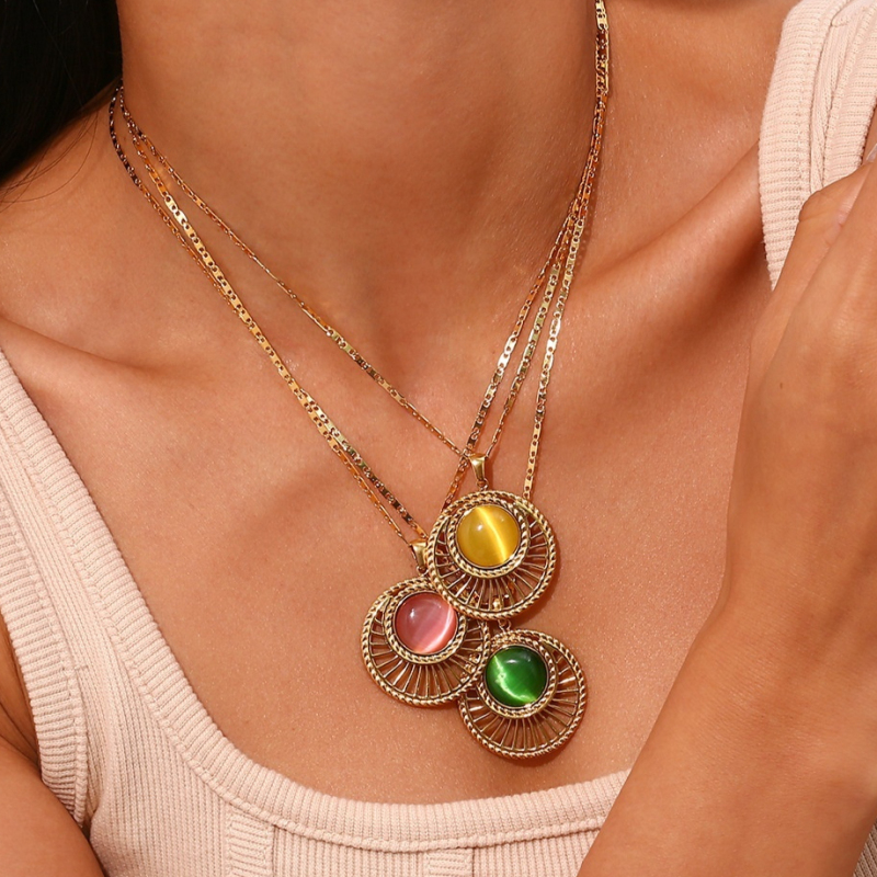 Color: necklace-golden-green stone, necklace-Golden-powder Stone, necklace-Golden-Earth Huangshi