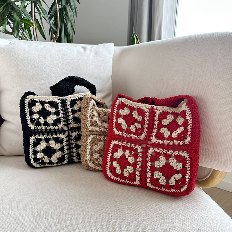 Color: Grandmother grid hollow red, grandmother grid hollow coffee, grandmother grid hollow Black