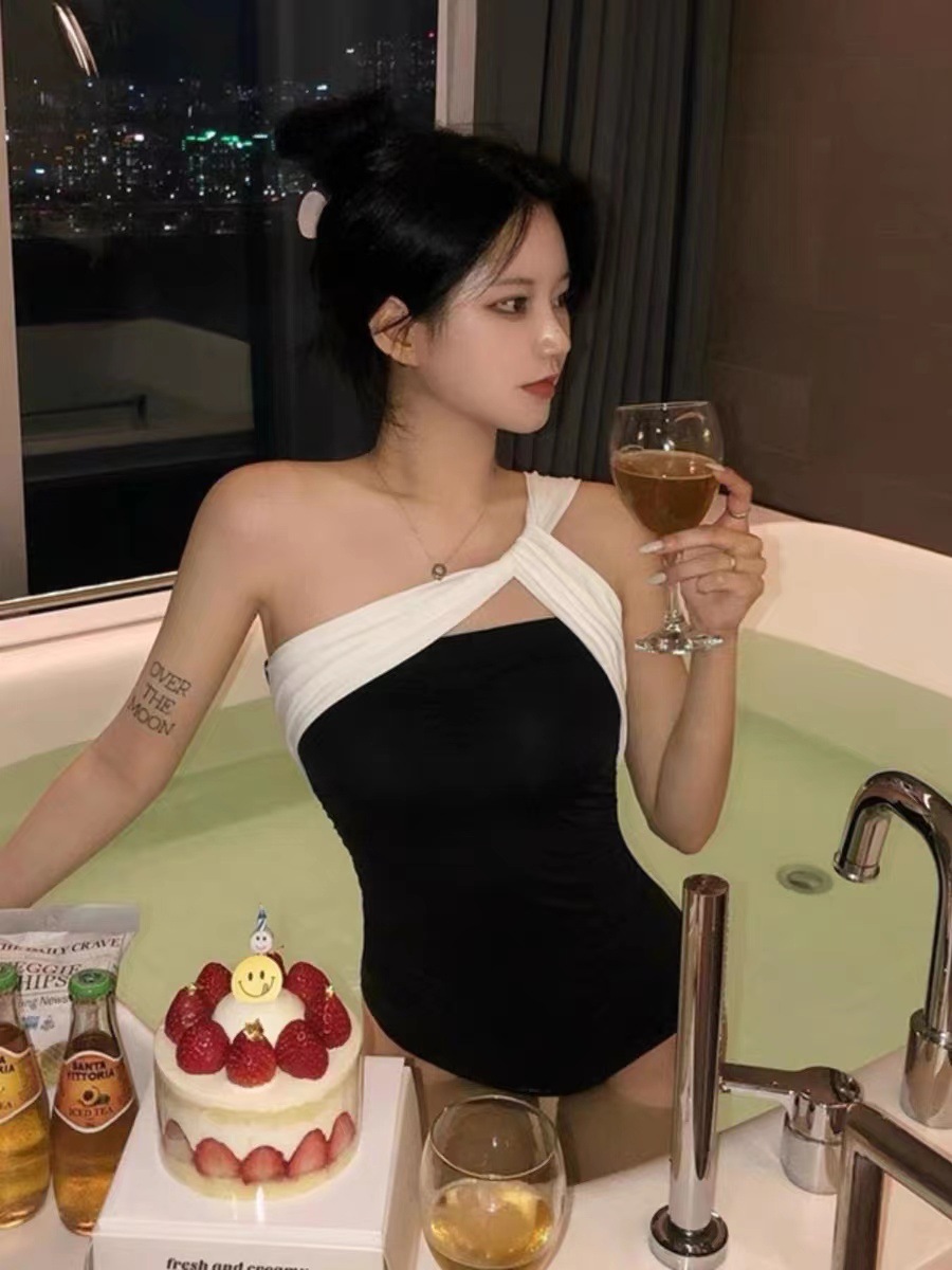 Hollow Siamese Covering Belly Thin Quick-drying Advanced Sense Holiday Swimsuit