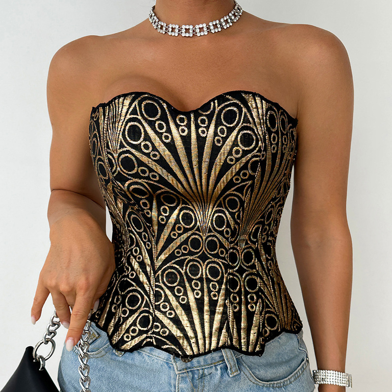 Hollowed-out Asymmetrical Sequin Double-layer Tube Top