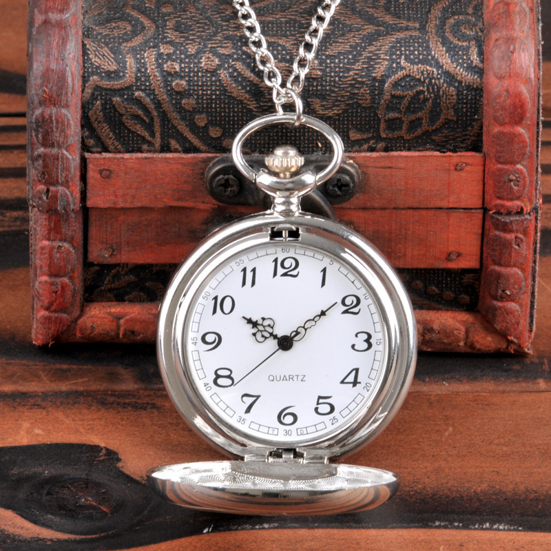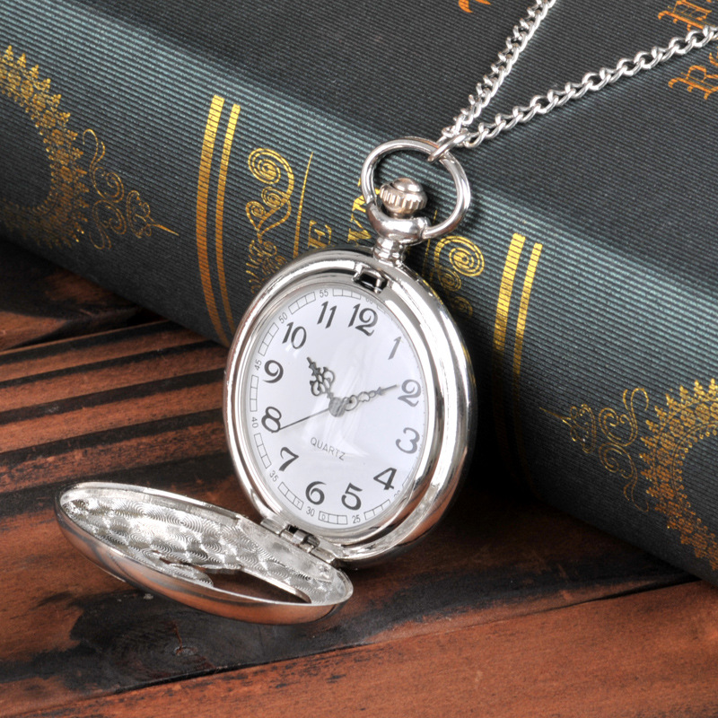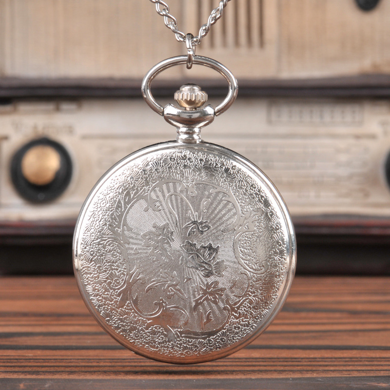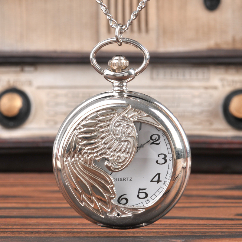 Hollowed out Eagle Silver Quartz Pocket Watch