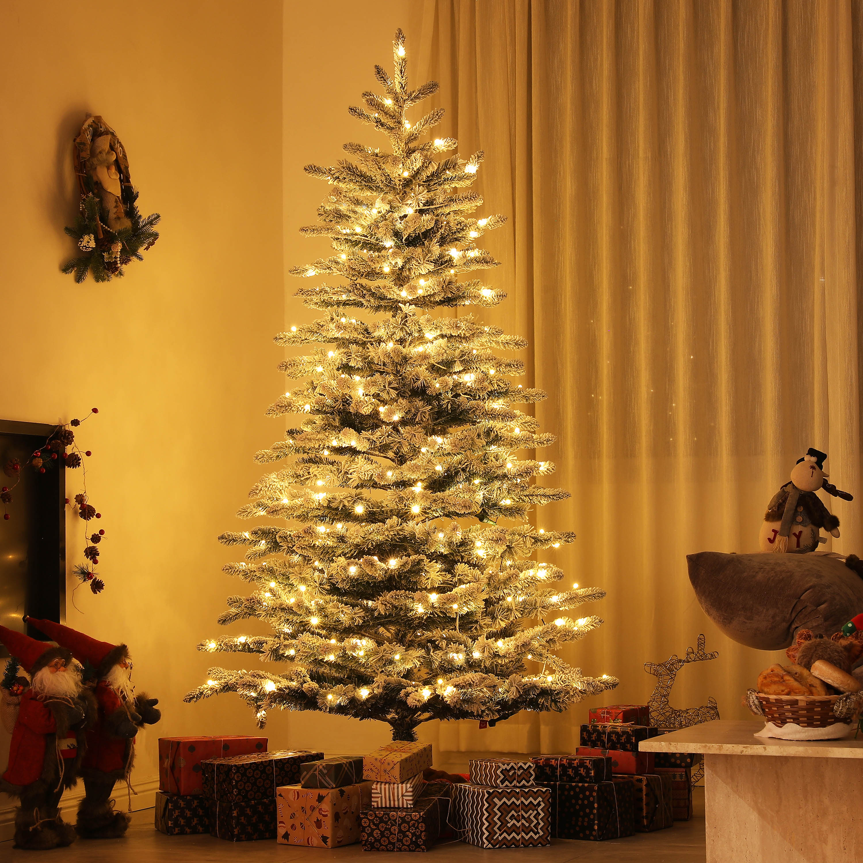 Product Name:HOMCOM 6.5 ft Pre-Lit Mountain Pine Artificial Christmas Tree, Snow Flocked Christmas Tree, Hinged Xmas Tree with 400 LED Lights and 990 Branch Tips for Holiday Party Decoration, Green