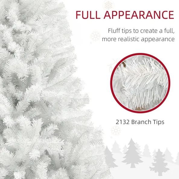 Faux Christmas Tree Information: Overall Dimensions (including base): 57.1" Dia. x 106.3" H;. Branch Count: 2132. You'll spend about 45-60 minutes fluffing this tree.