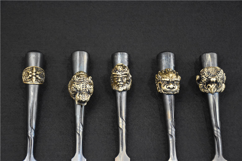Full length: 183mmBlade length: 71mmBlade width: 14mmMaterial: one-piece pattern steel, copper