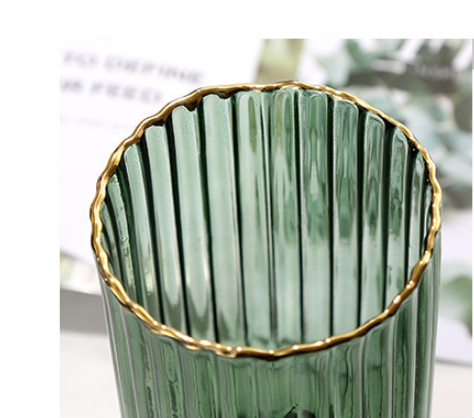Glass vases with intricate lining patterns will enhance the decoration of the living room. The vases are available in a variety of attractive colors. The edge of the glass vase is lined with gold, which further adds to its beauty. The glass vase has a unique bouquet design and can be used as a decorative center on a dining table. Place the vase in any corner of the house to create a lovely designer aesthetic. The small waist vase is also a great gift.