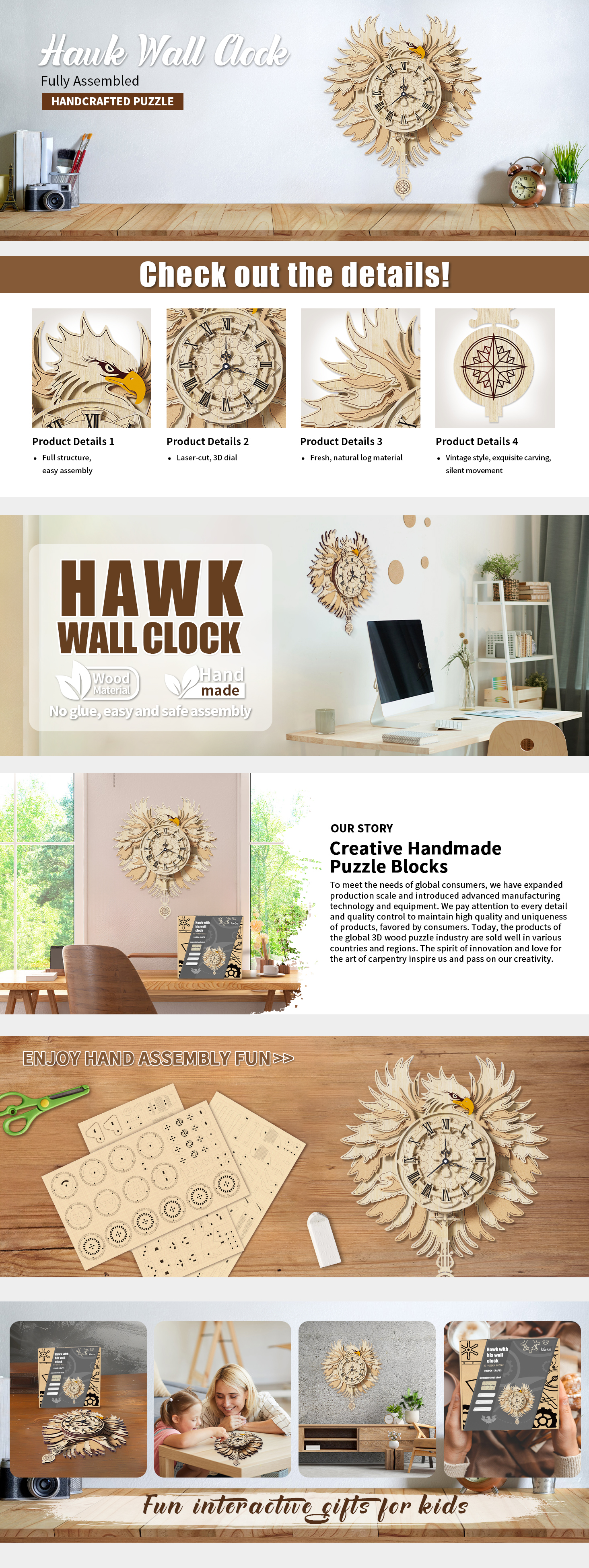 Home Fashion Minimalist Hawk With His Wall Clock Puzzle Toys