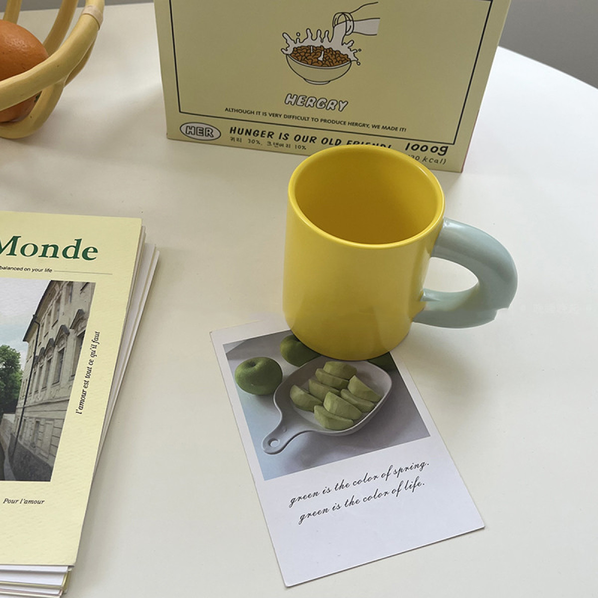 Colour: blue, green, yellow, beige, apricot
