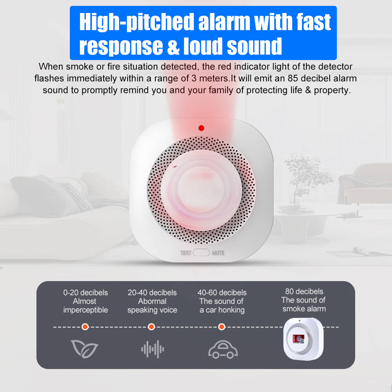 • EXTRA LOUD SOUND AND LED ALARM: When the smoke alarm detects smoke or detect combustion particles in the air, it will sound their alarms and the red LED will flash rapidly.Protect family and property safety in time