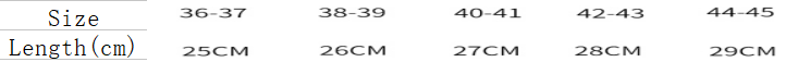 Shoe size: 36-37 (suitable for 36-35) 38-39 (suitable for 37-38) 40-41 (suitable for 39-40) 42-43 (suitable for 41-42) 44-45 (suitable for 43- 44 wear)