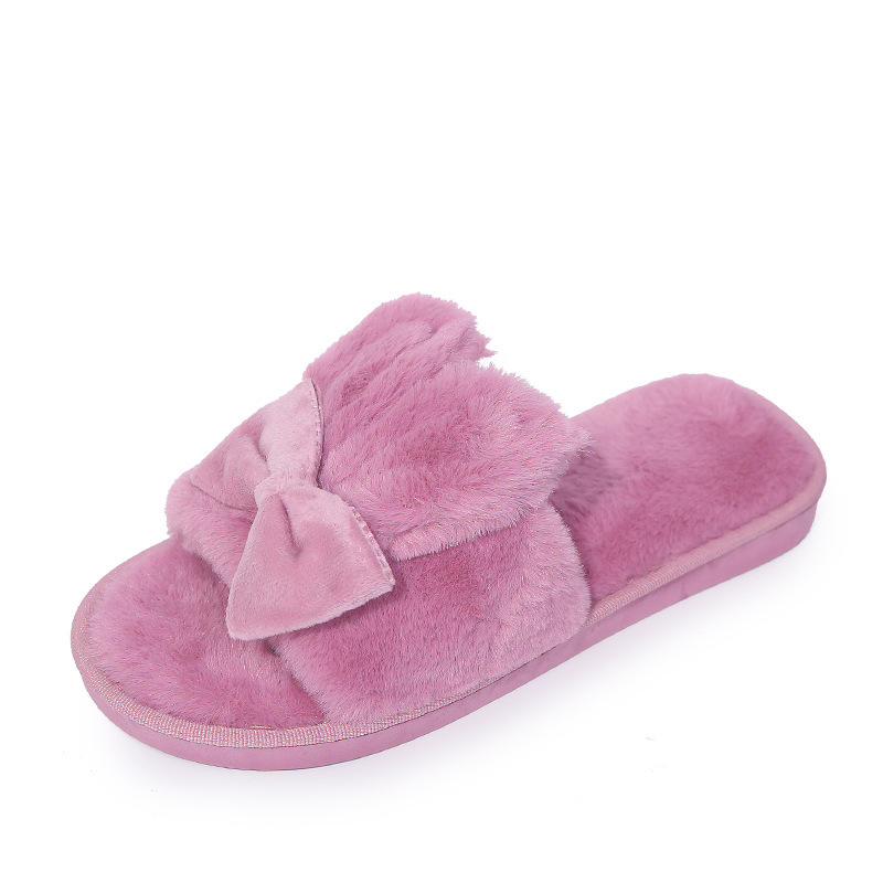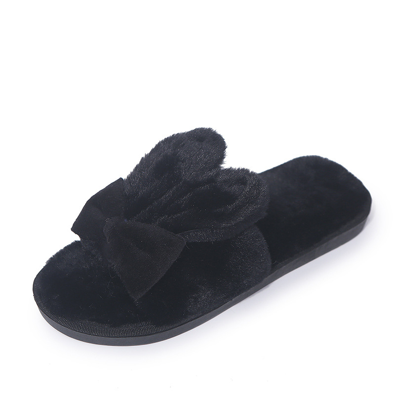 Home Furry Slippers Female Bow Rabbit Ears