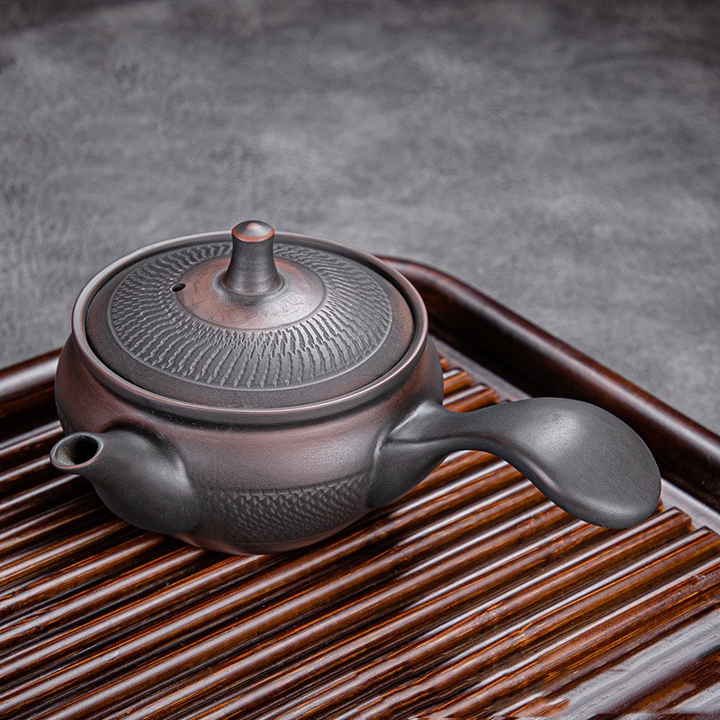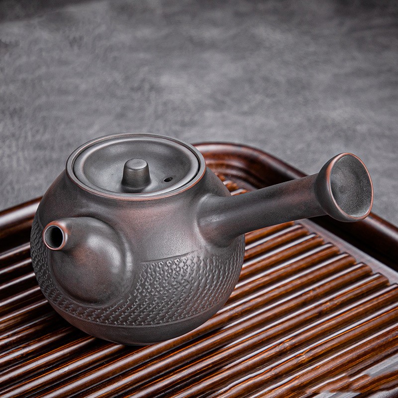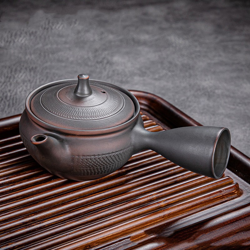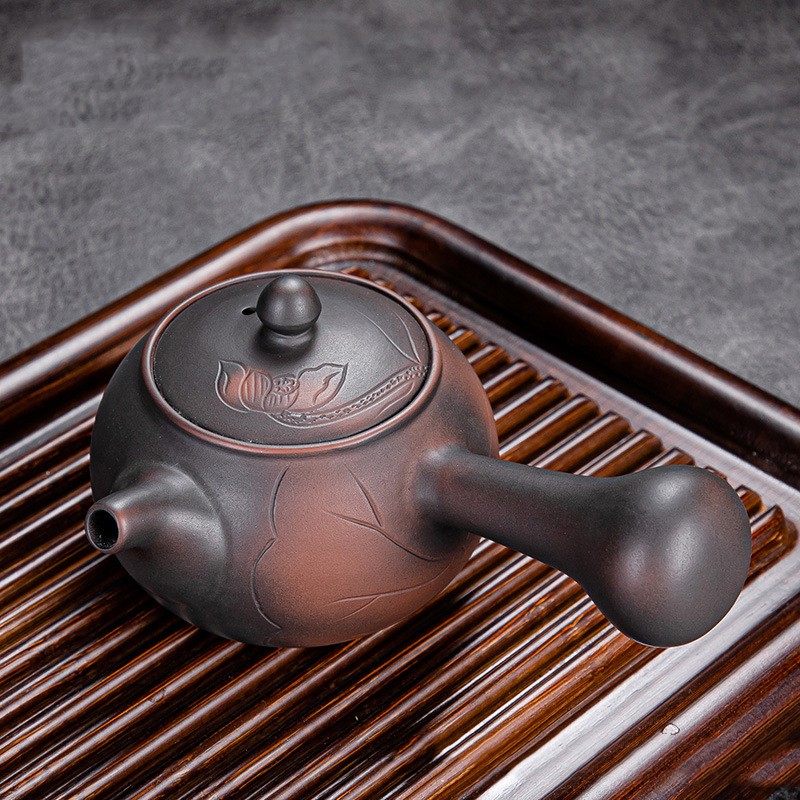 Purple pottery antique side handle pot: specification: 15cm long * 7.5cm high, capacity: 150ml