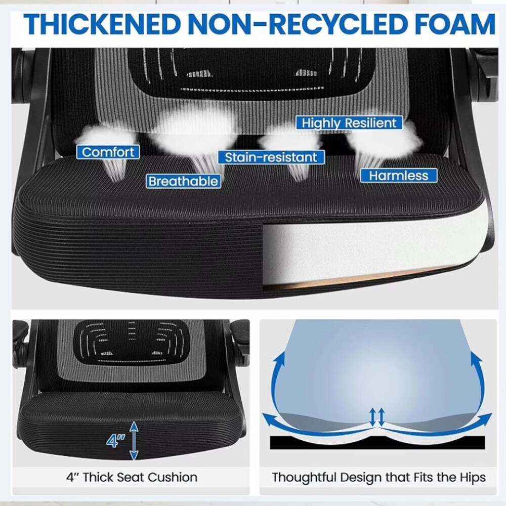 ---By gently pushing up and down the lever behind the seat, you can easily adjust the seat height of this computer net chair to meet your needs.