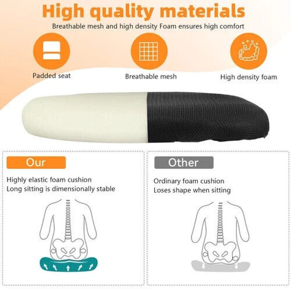 ---The mesh fabric back offers unique comfort and excellent back support. The breathable mesh fabric gives a sense of elastic rebound, bringing ultimate comfort.