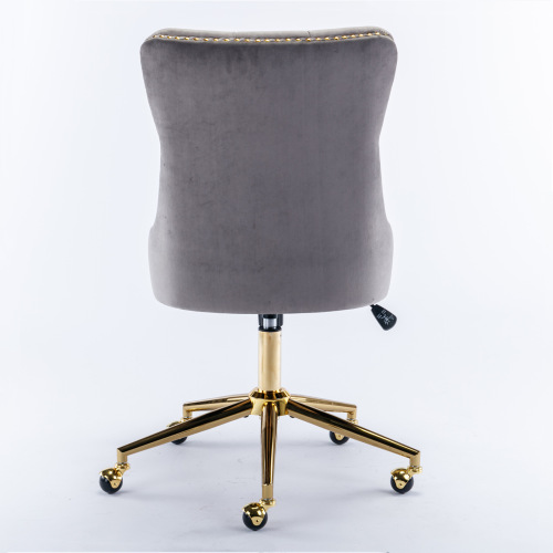 A&A Furniture Office Chair, Velvet Fabric Tufted Button Home Office Chair with Gold Metal Base, Adjustable Office Chair Swivel Office Chair (Grey)