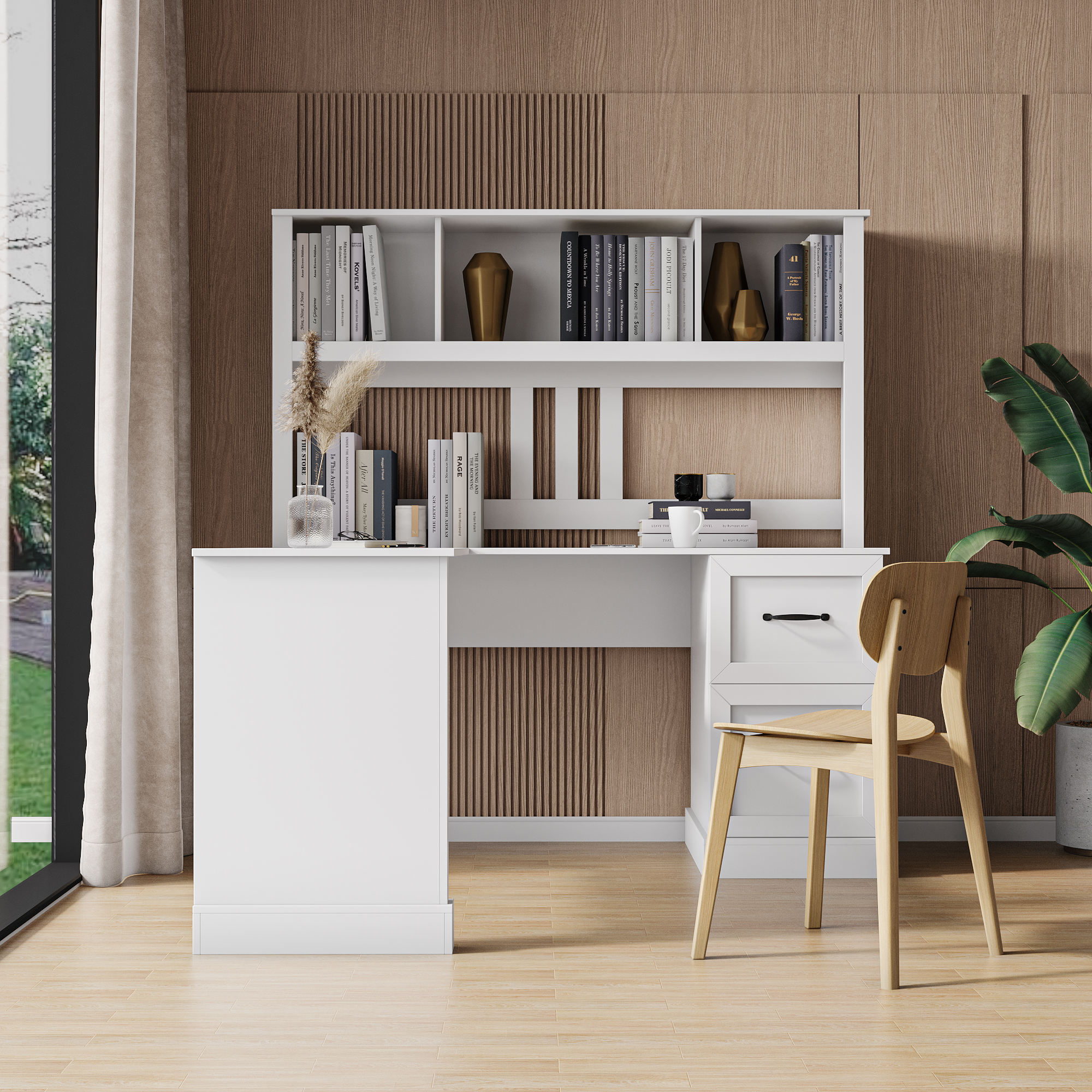 Product Name:Home Office Computer Desk with Hutch, Antiqued White finish