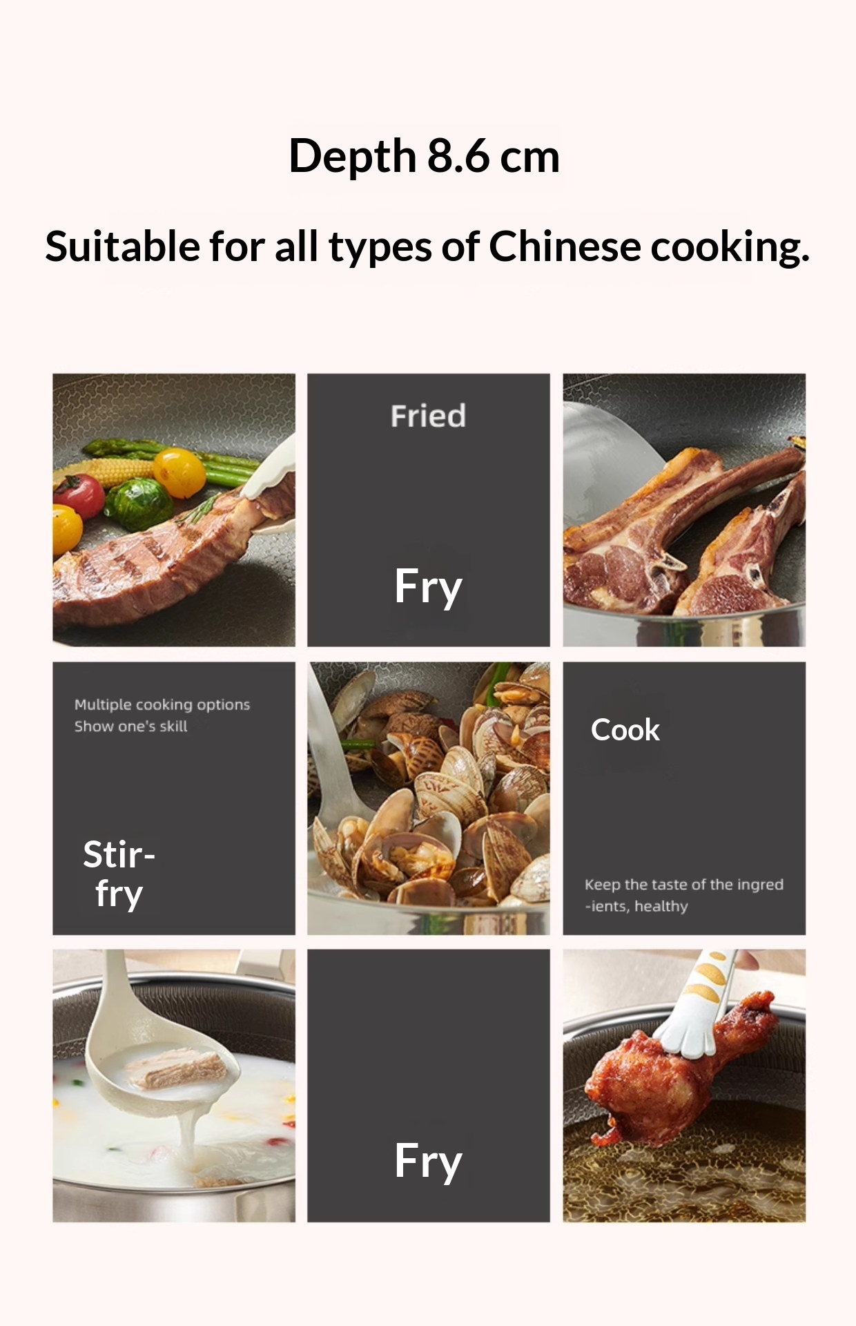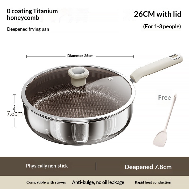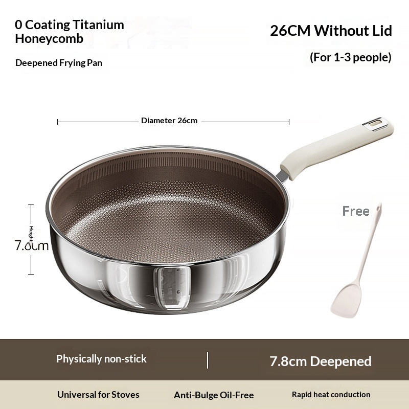 Specifications: [26 cm, no lid, deepened] — suitable for 1 to 3 people; pairs perfectly with a steel spatula and is ideal for frying and stir-frying; [26 cm, with lid, deepened] — suitable for 1 to 3 people; pairs perfectly with a steel spatula and is ideal for frying and stir-frying; [28 cm, with lid, deepened] — suitable for 3 to 7 people; pairs perfectly with a steel spatula and is ideal for frying and stir-frying.